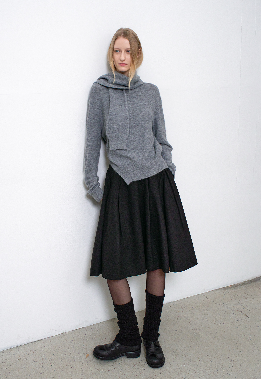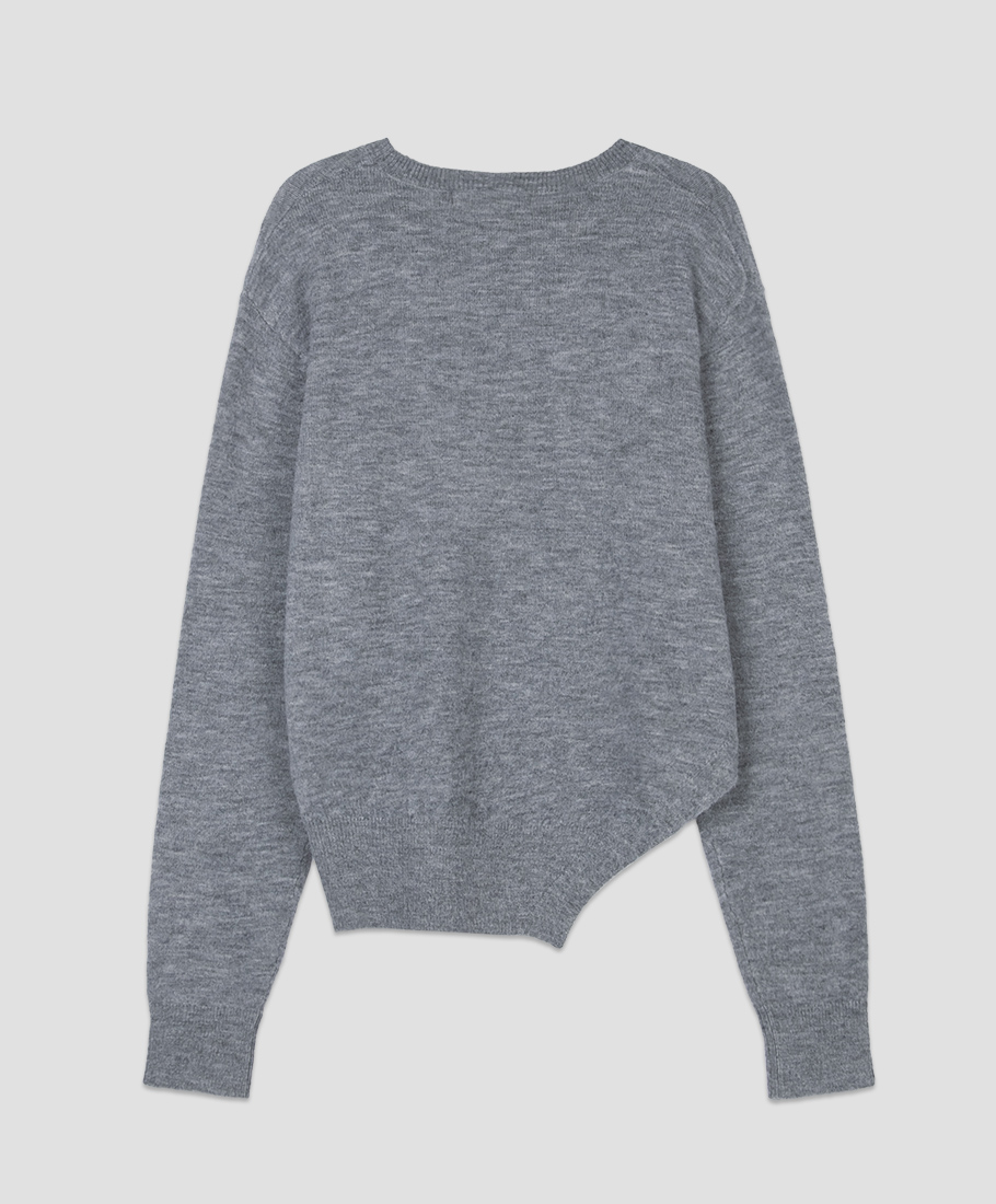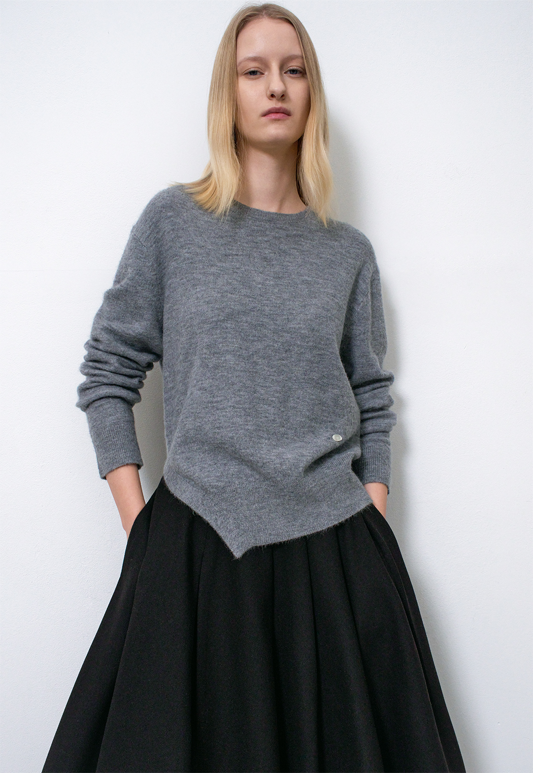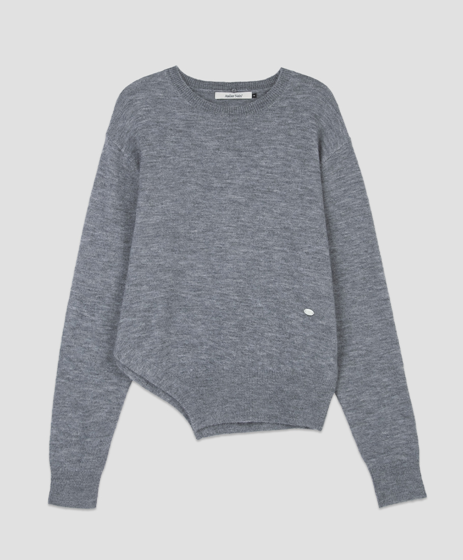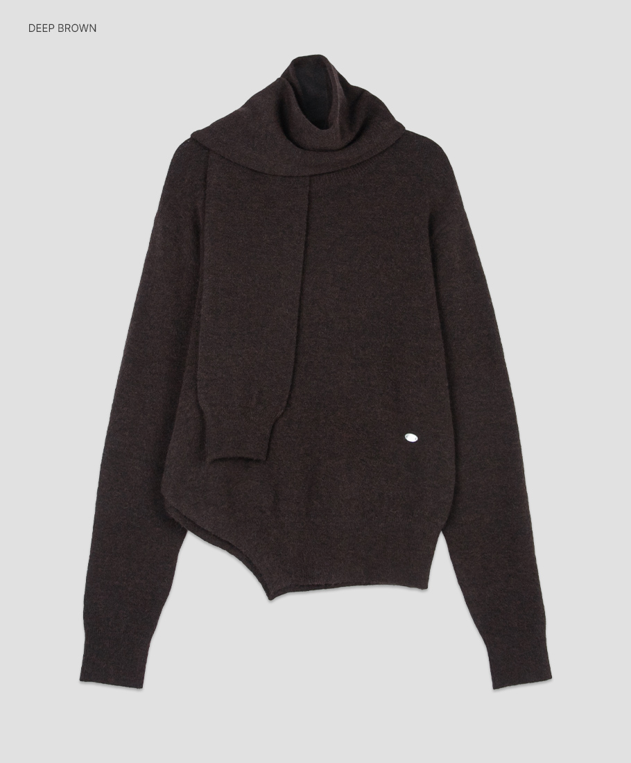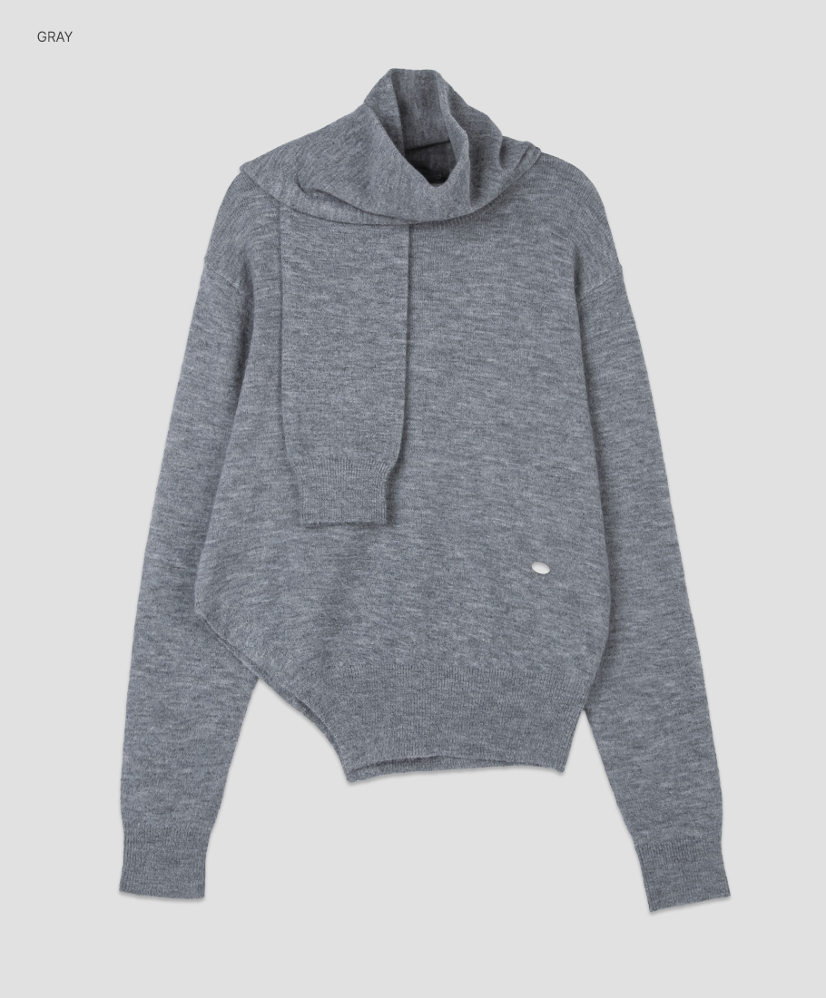 FAKE 소매 모양의 머플러가 SET인 비대칭 햄라인 니트 풀오버 입니다.