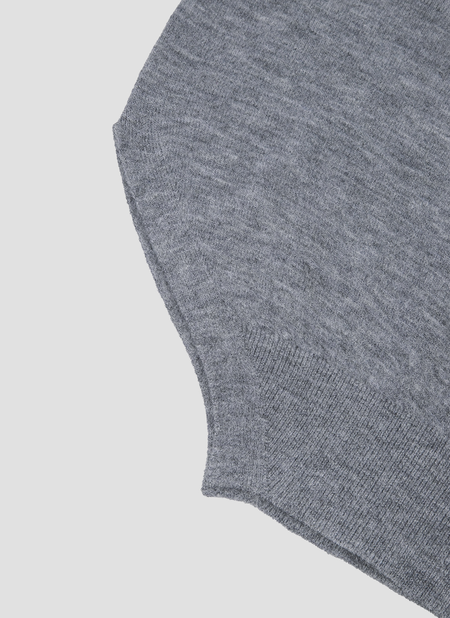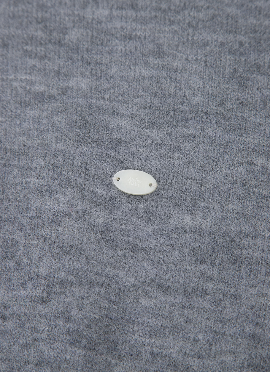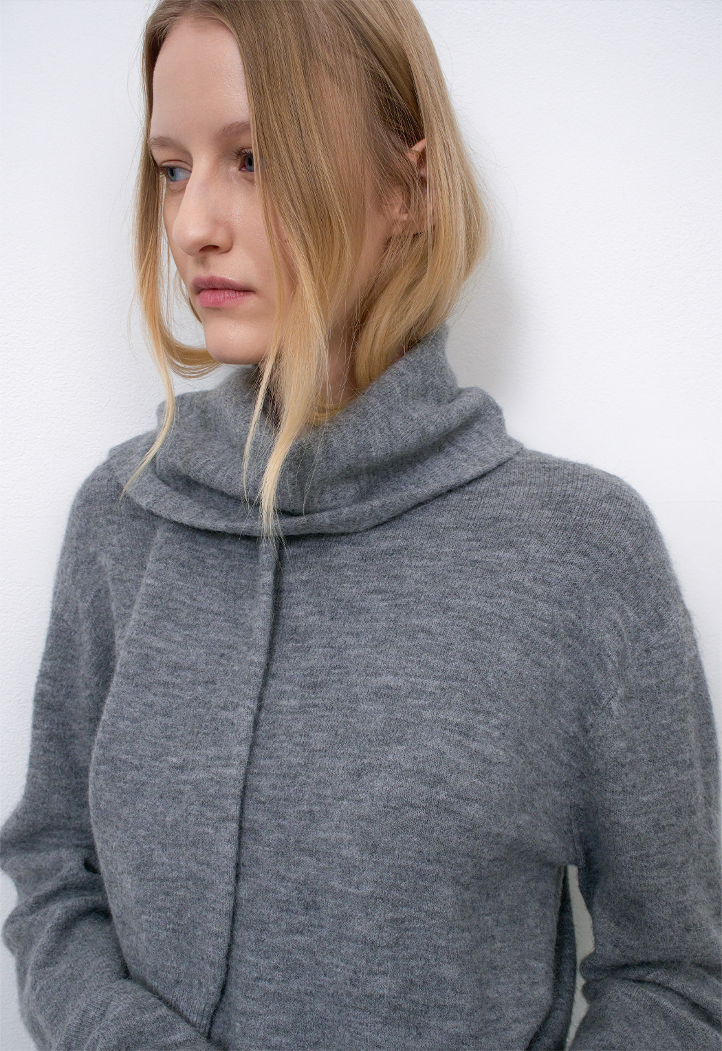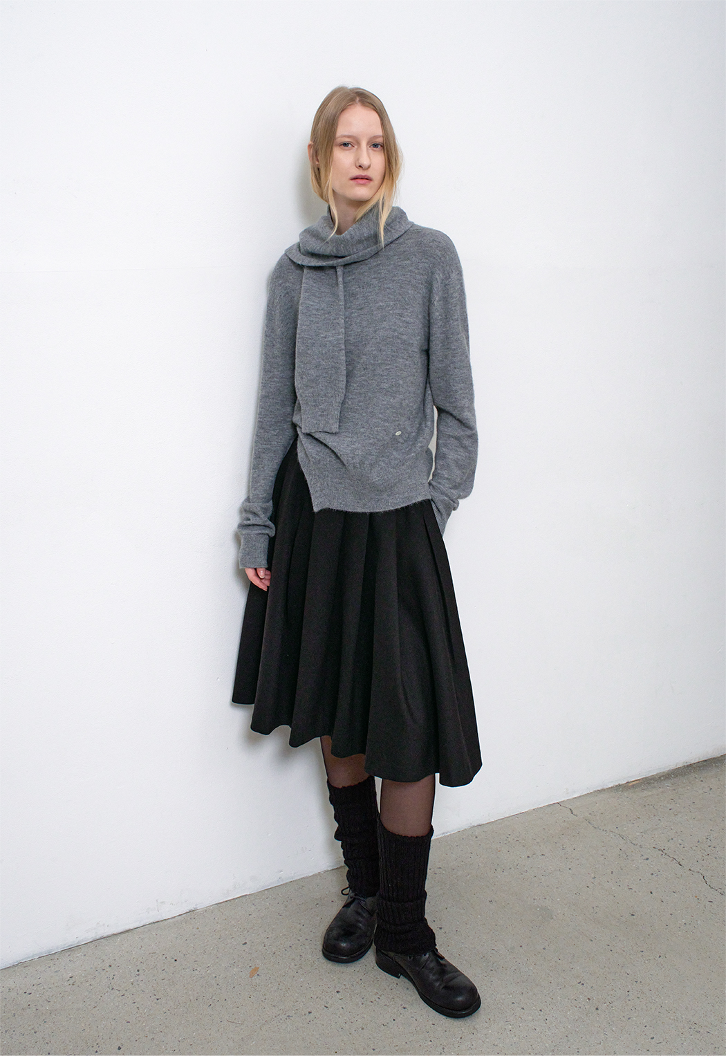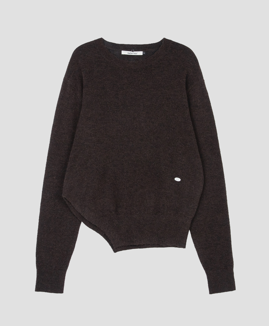 FAKE 소매 모양의 머플러가 SET인 비대칭 햄라인 니트 풀오버 입니다.
