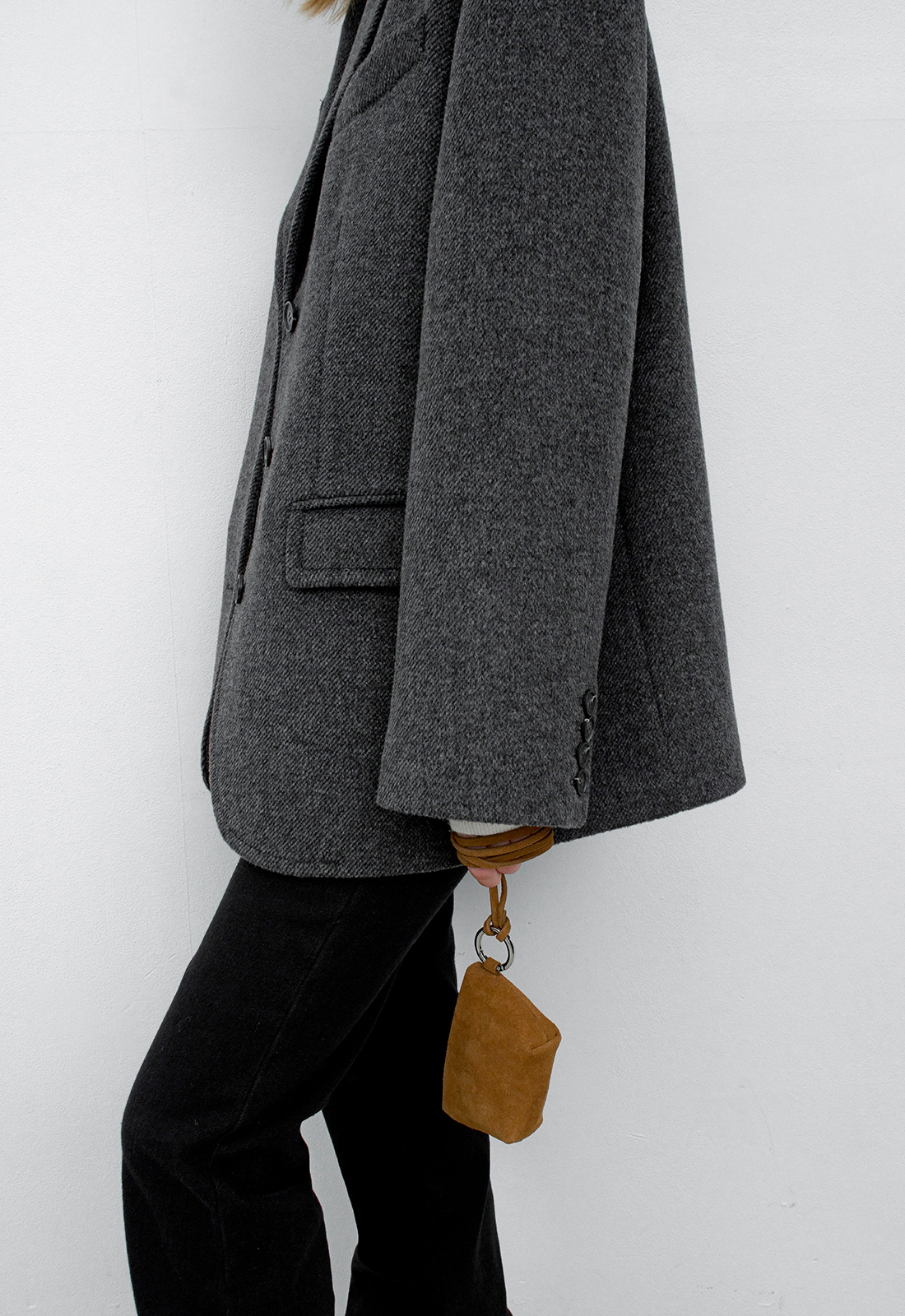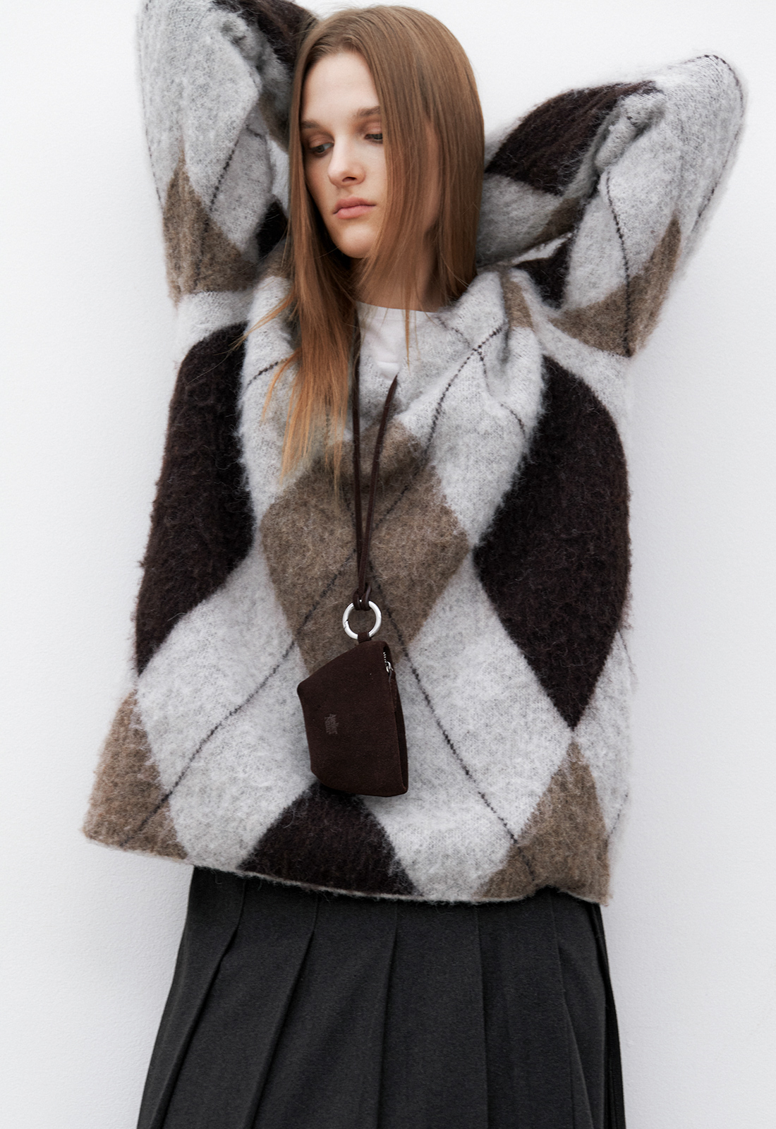 부드러운 촉감과 고급스러운 질감의 소가죽 스웨이드 소재로 제작된 미니백입니다.