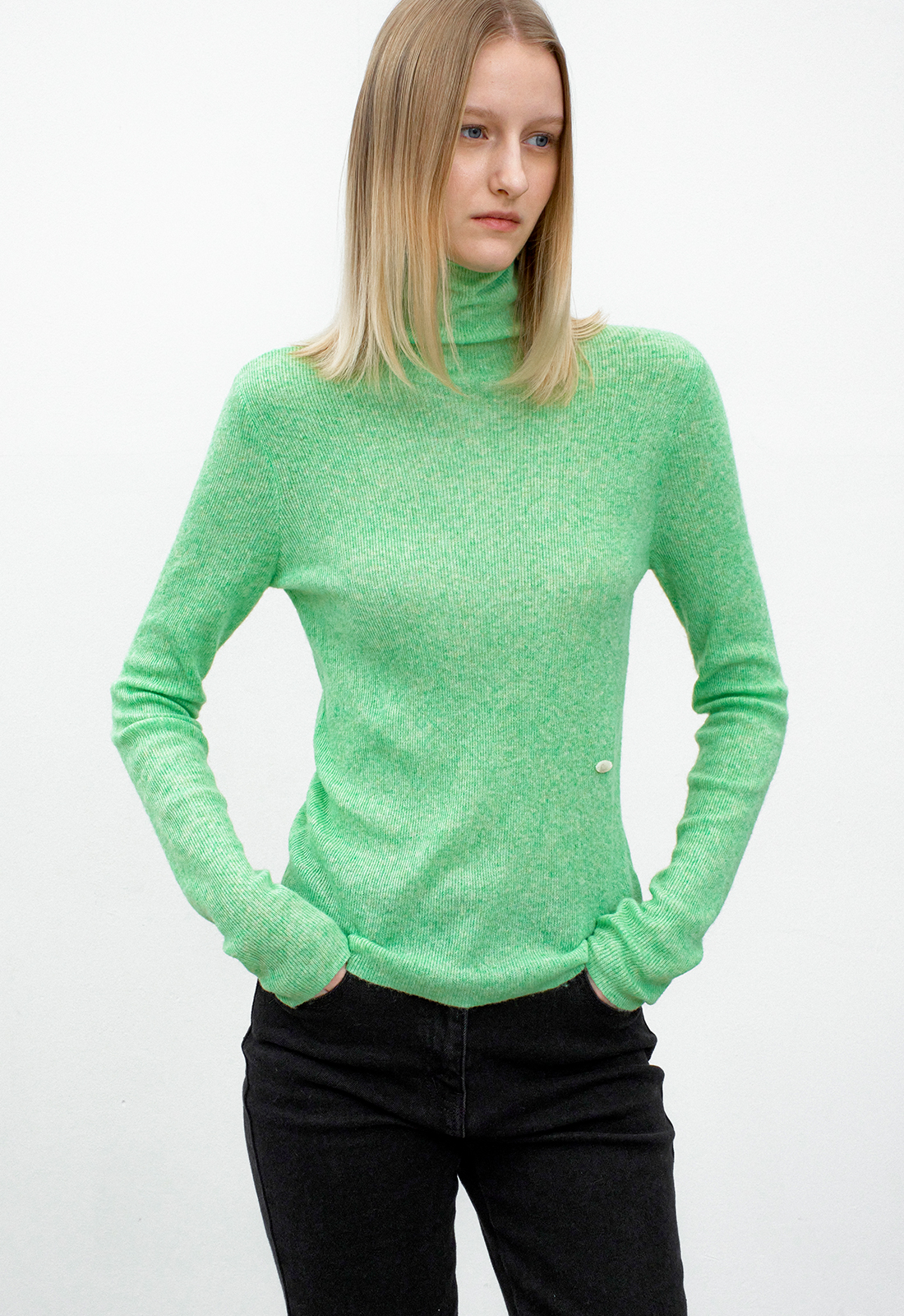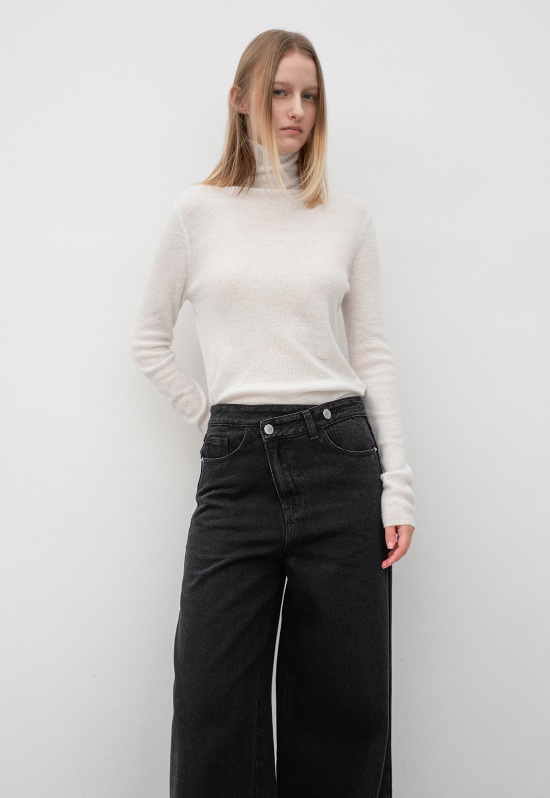 얇은 골지로 여리여리한 분위기를 자아냅니다. 착용감이 부드러우며,
