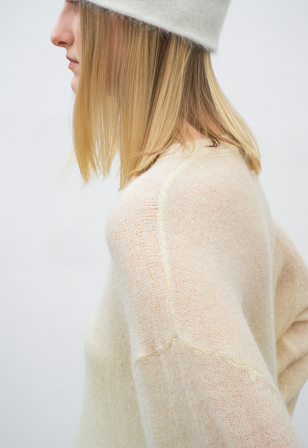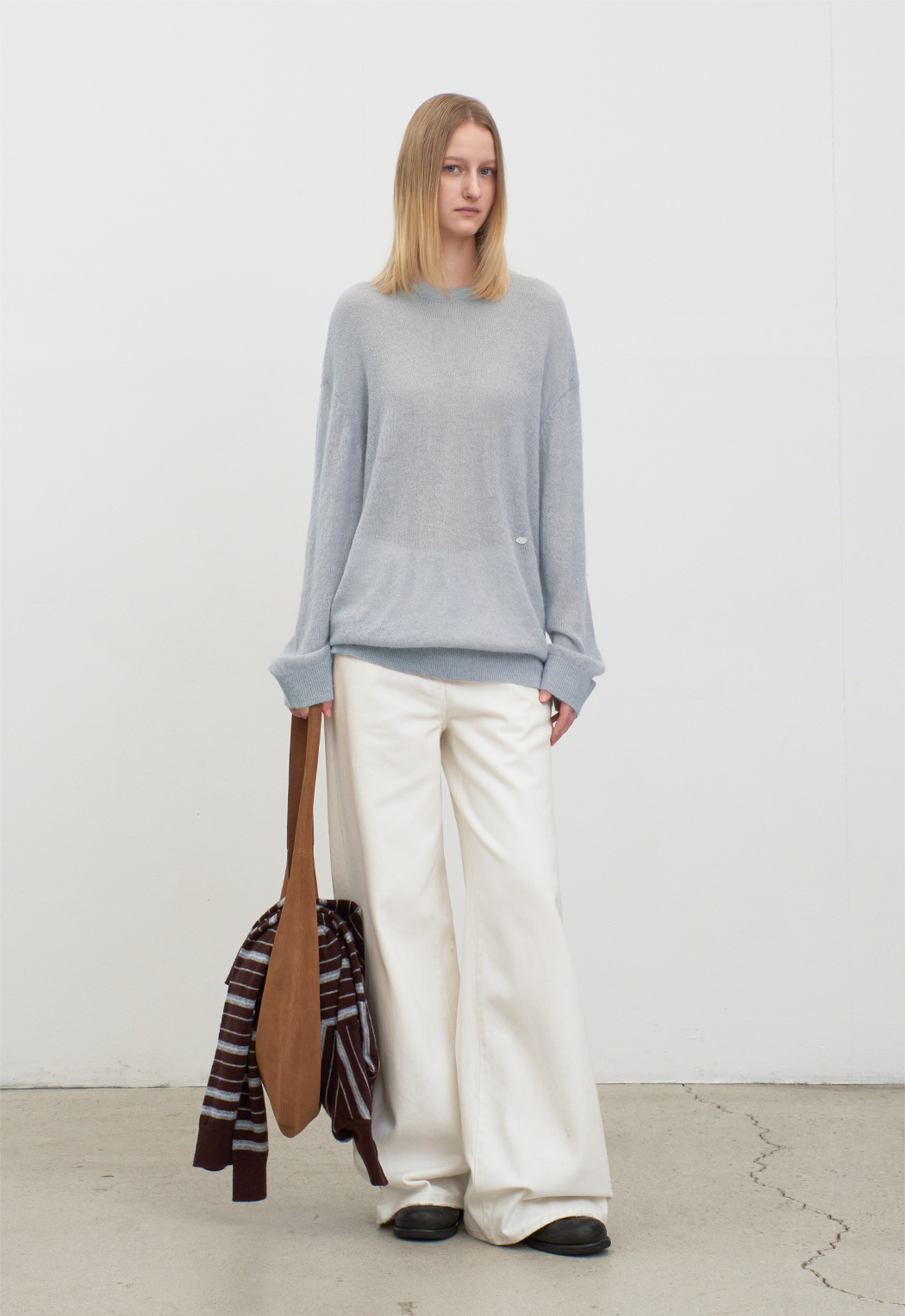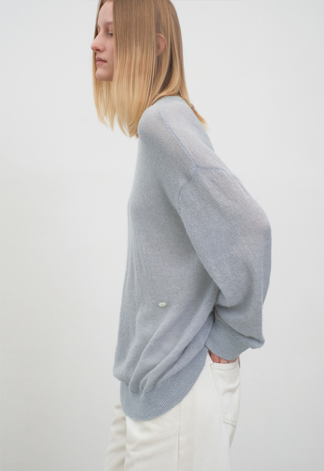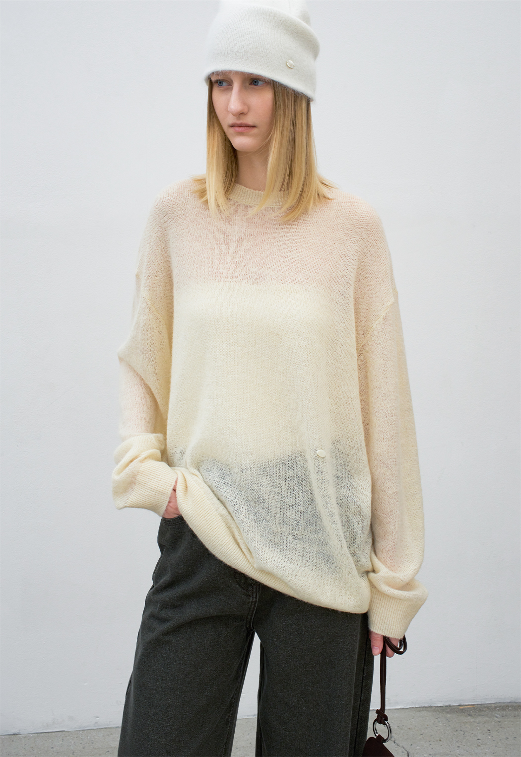 헤어리한 원사감의 루즈핏 시어 니트 풀오버입니다.