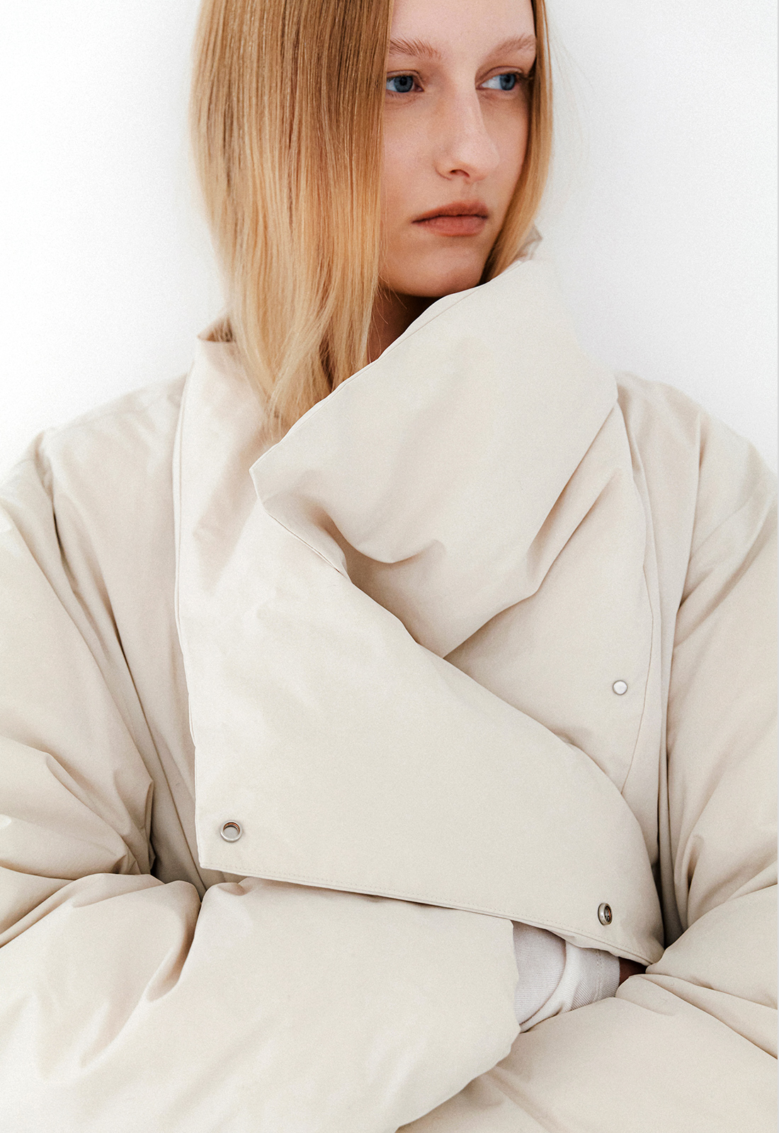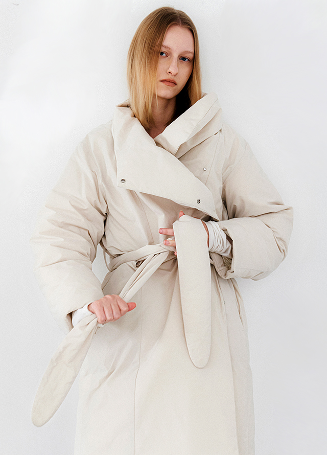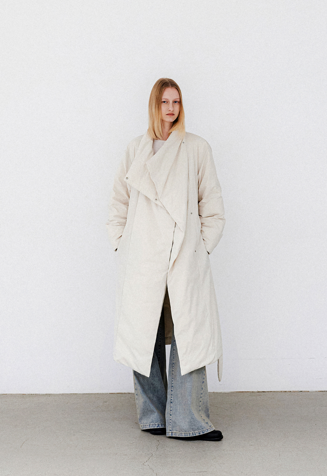 깊이감 있는 더블 여밈 디테일이 보온성을 한층 높여줍니다.