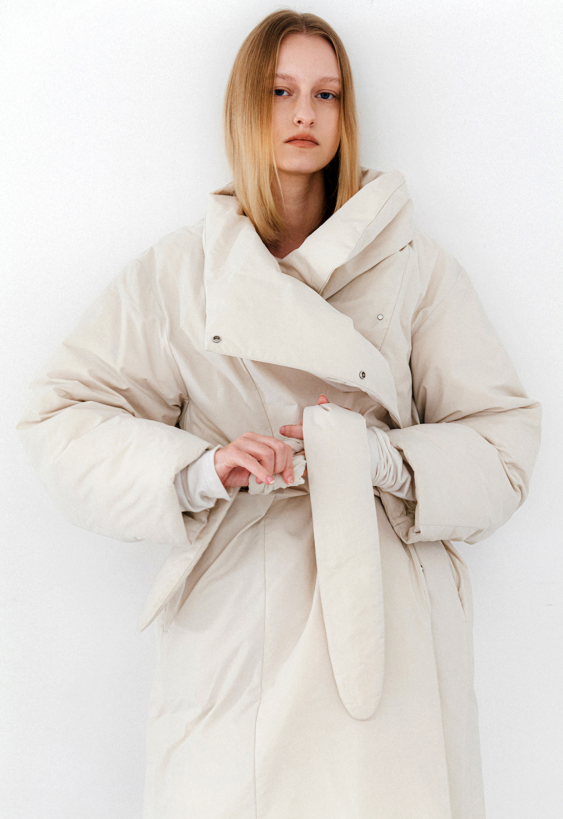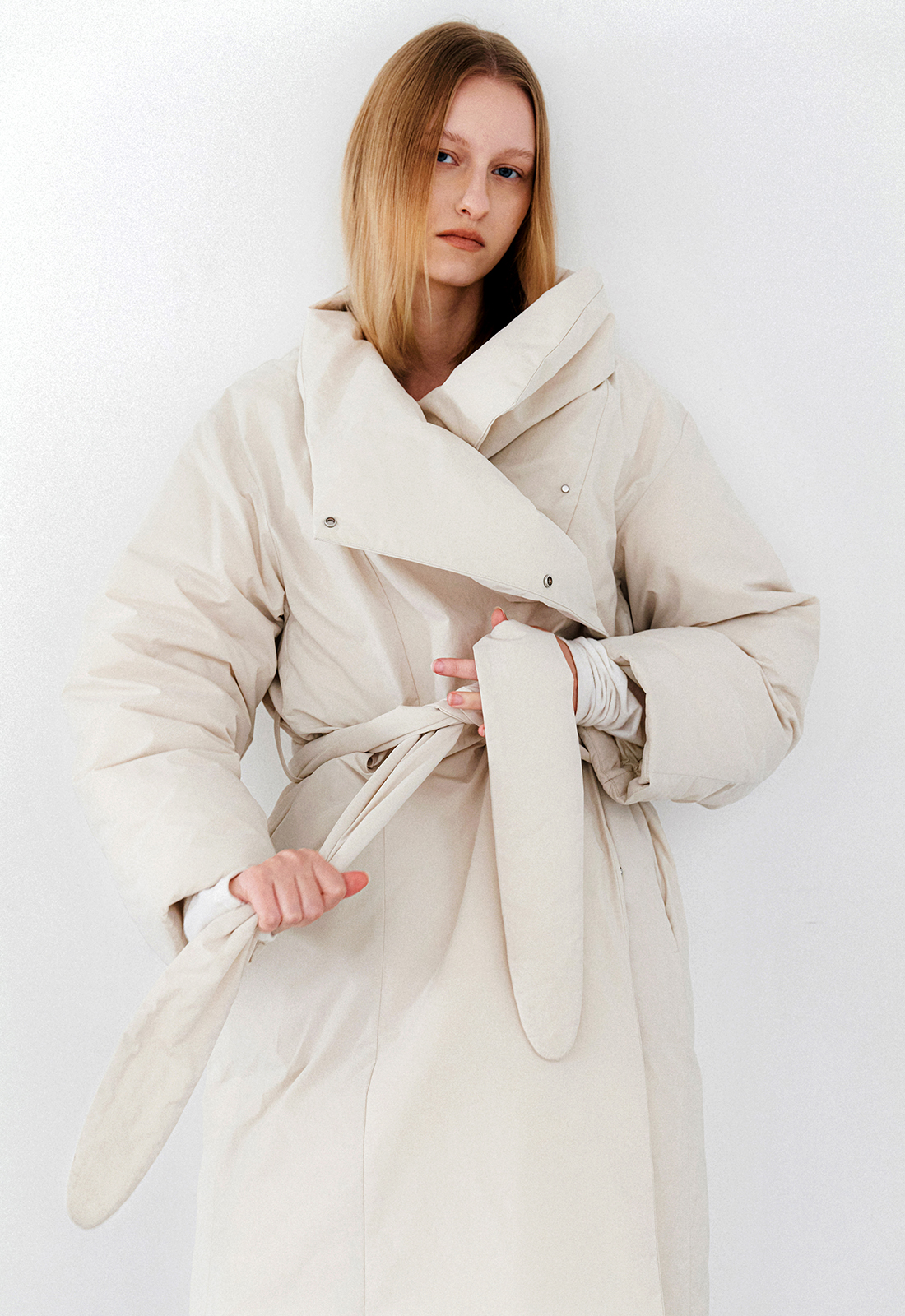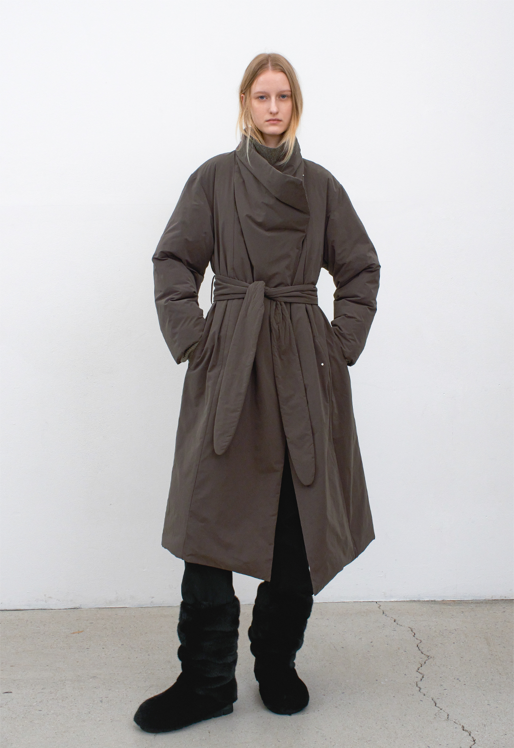 깊이감 있는 더블 여밈 디테일이 보온성을 한층 높여줍니다.
