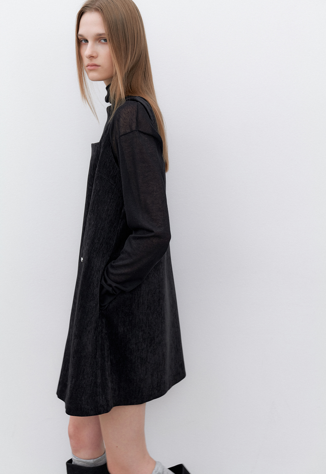벨벳 터치감의 A line 미니 드레스 입니다.