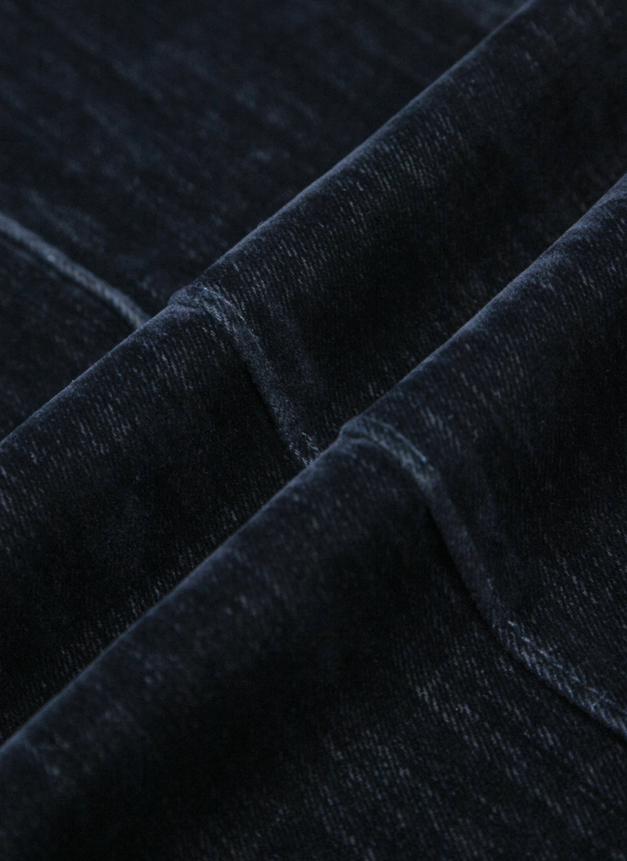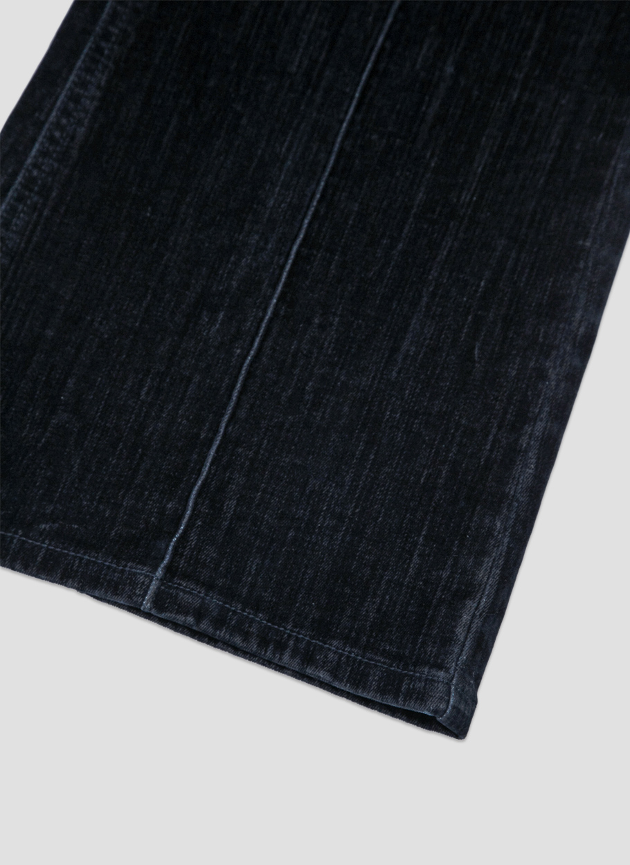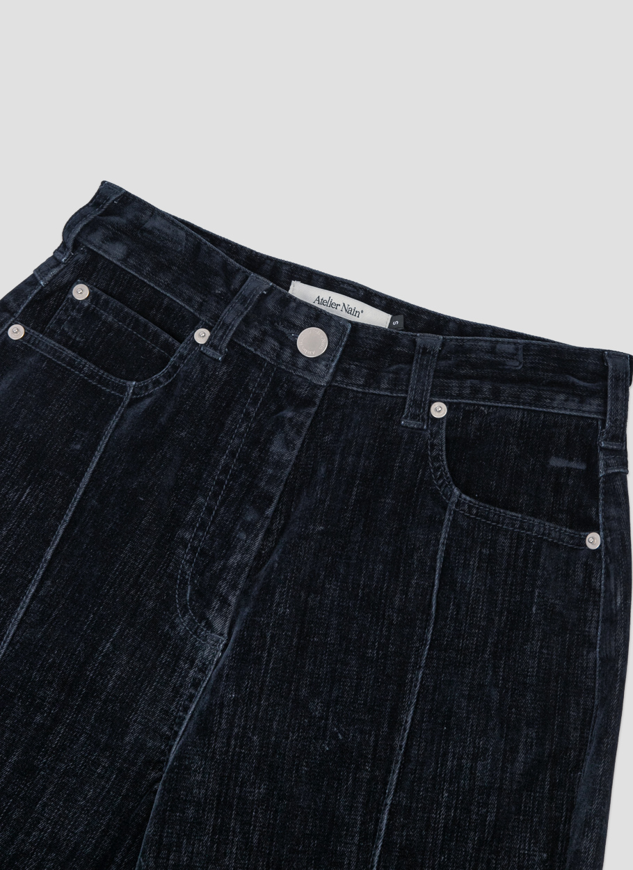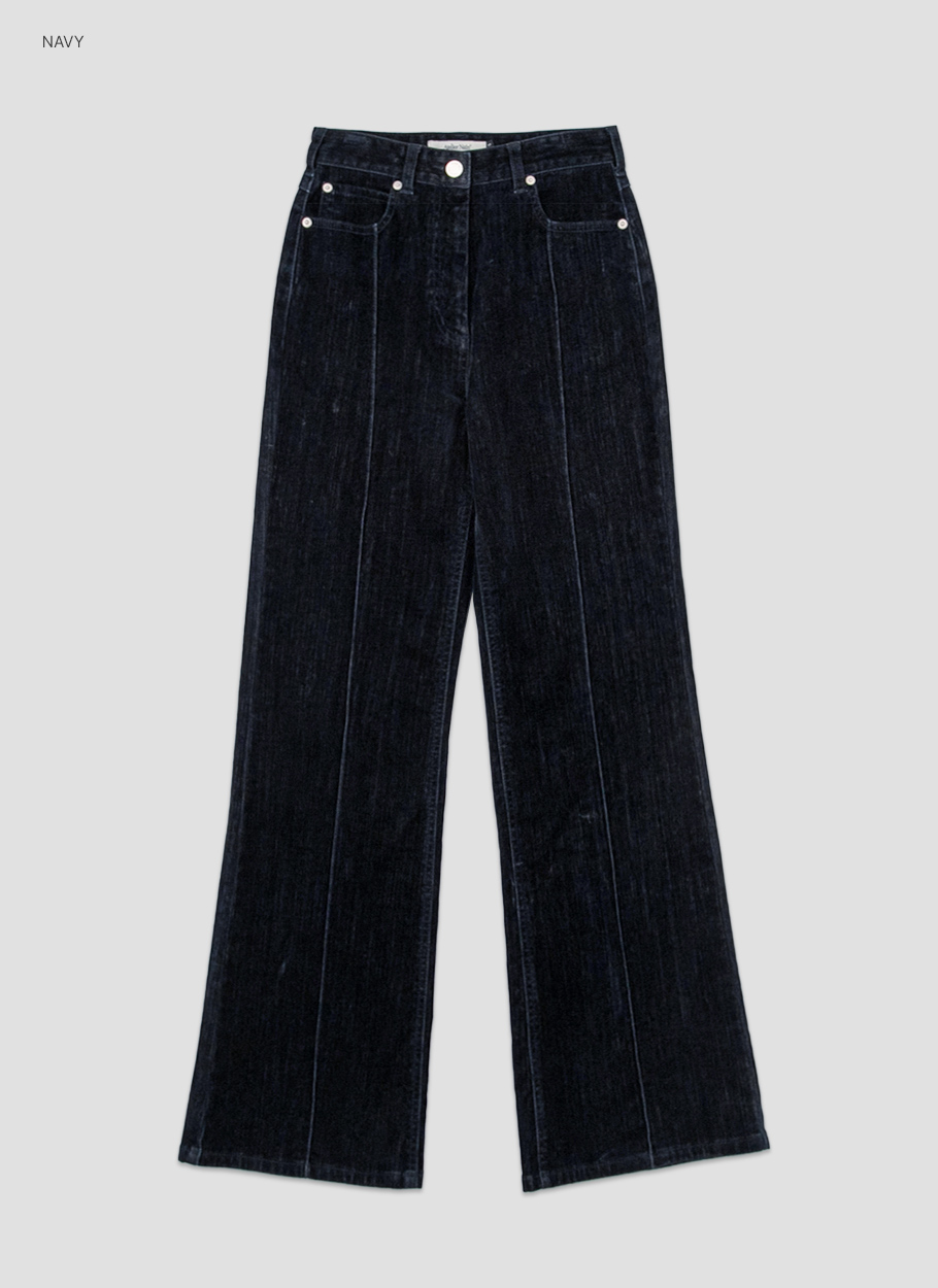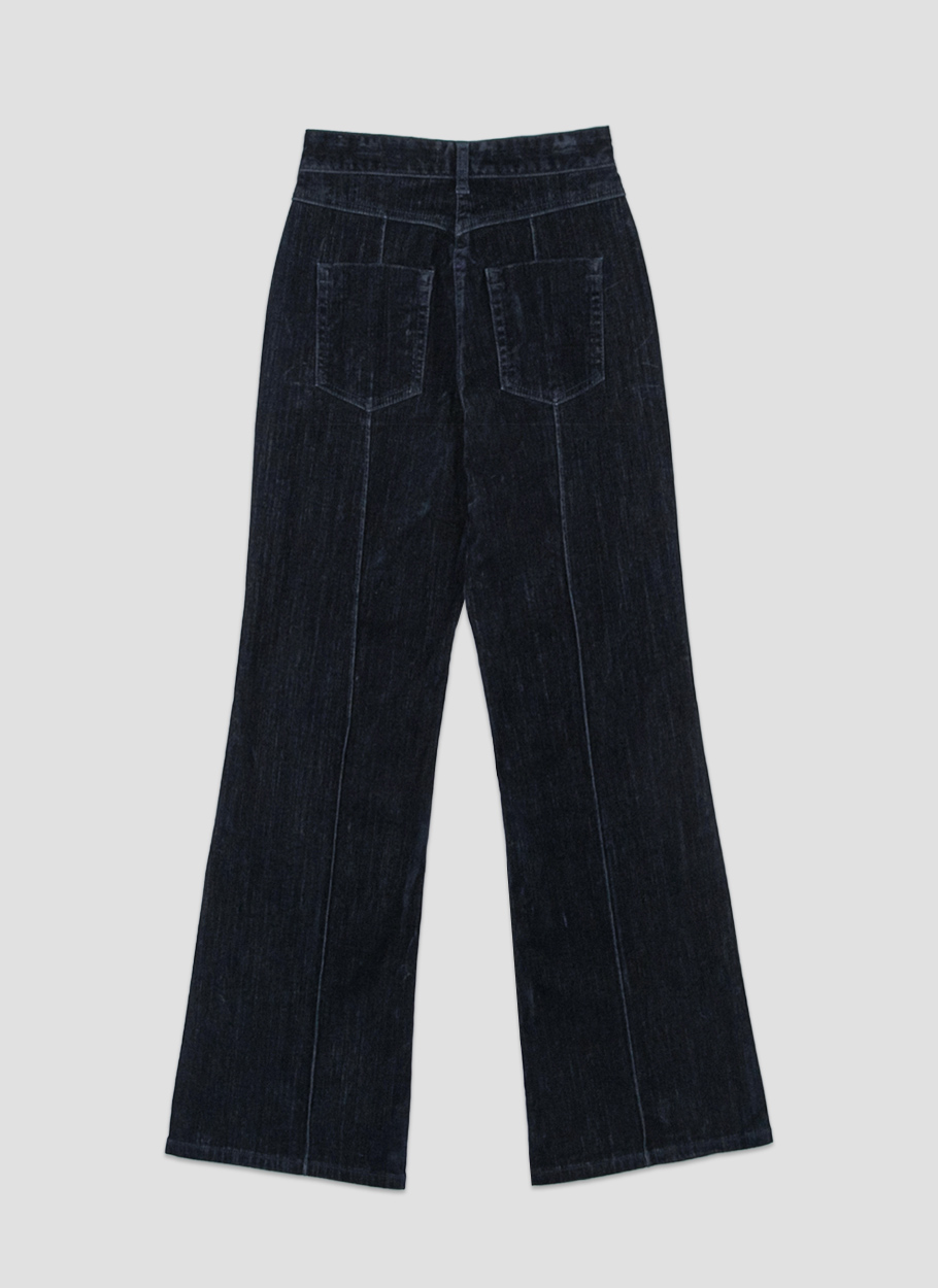 벨벳데님으로 만들어진 부츠컷 데님 팬츠입니다.