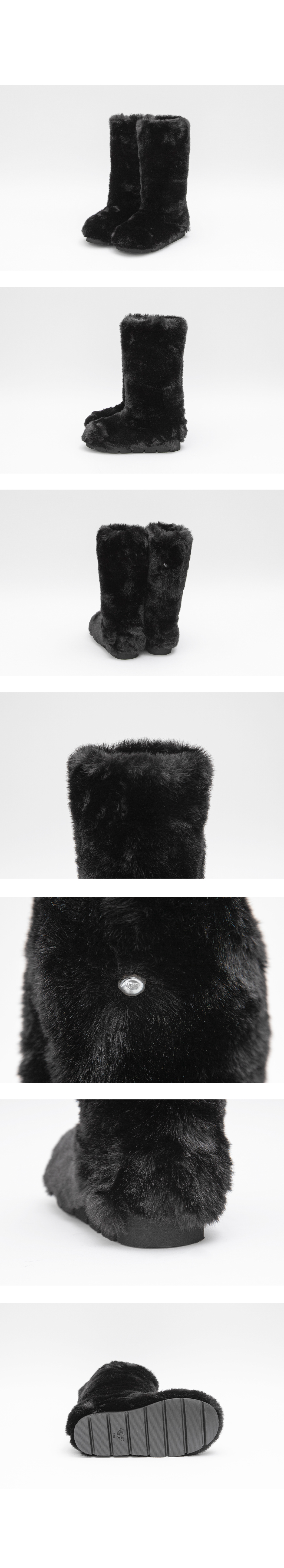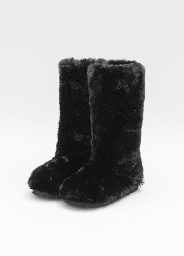 블랙 컬러의 부드러운 퍼 소재 부츠입니다.