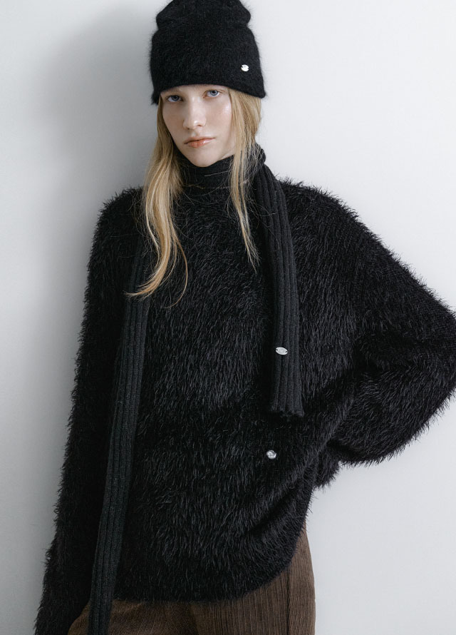 베이직한 골지 디자인의 니트 머플러입니다.