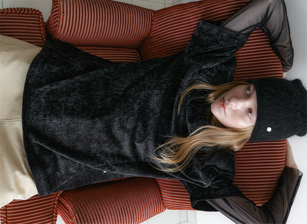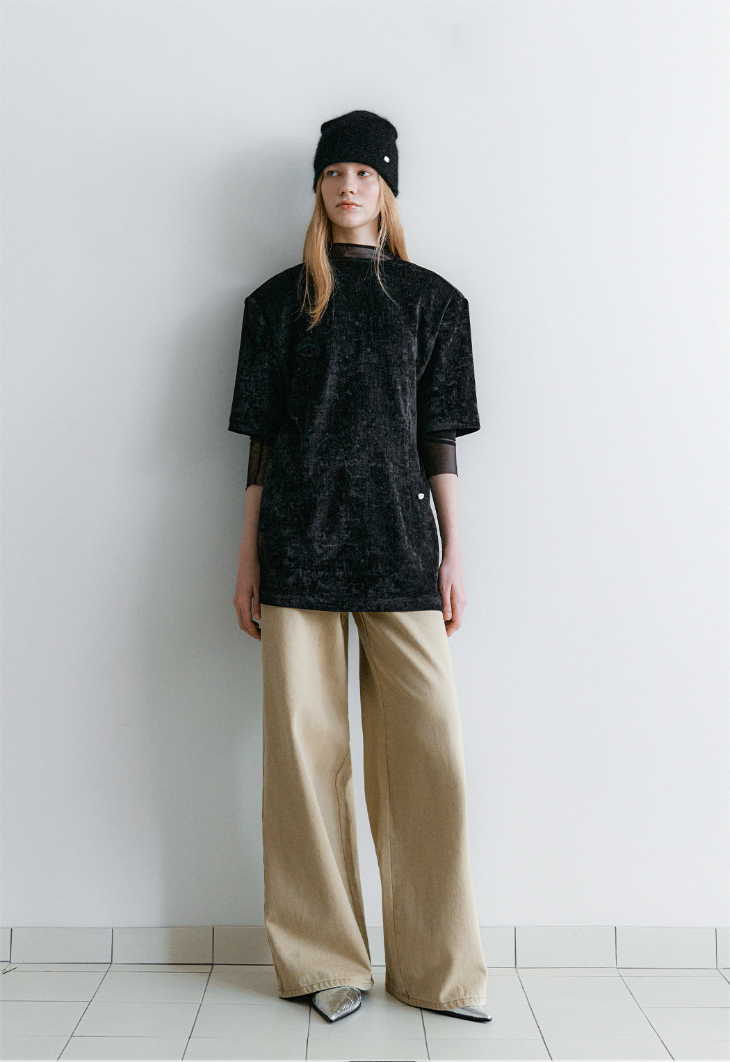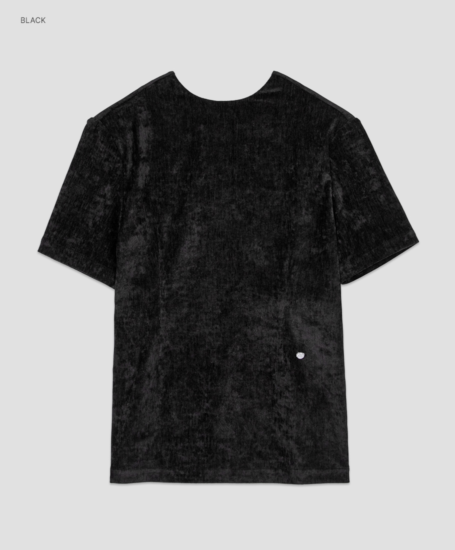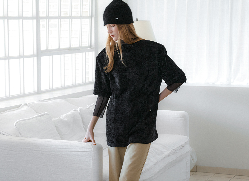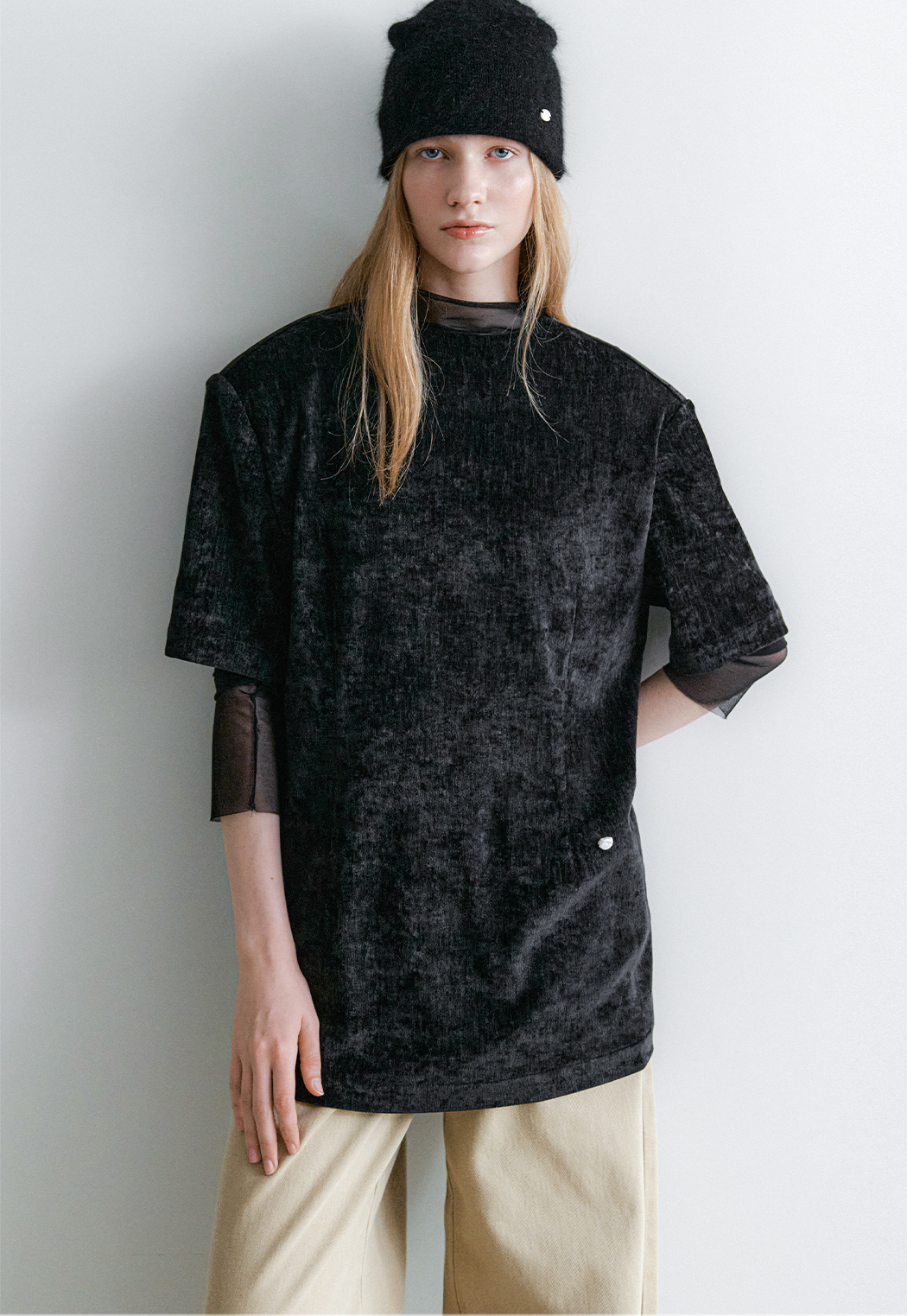 고급스러운 벨벳 소재가 돋보이는 하프슬리브 블라우스입니다.