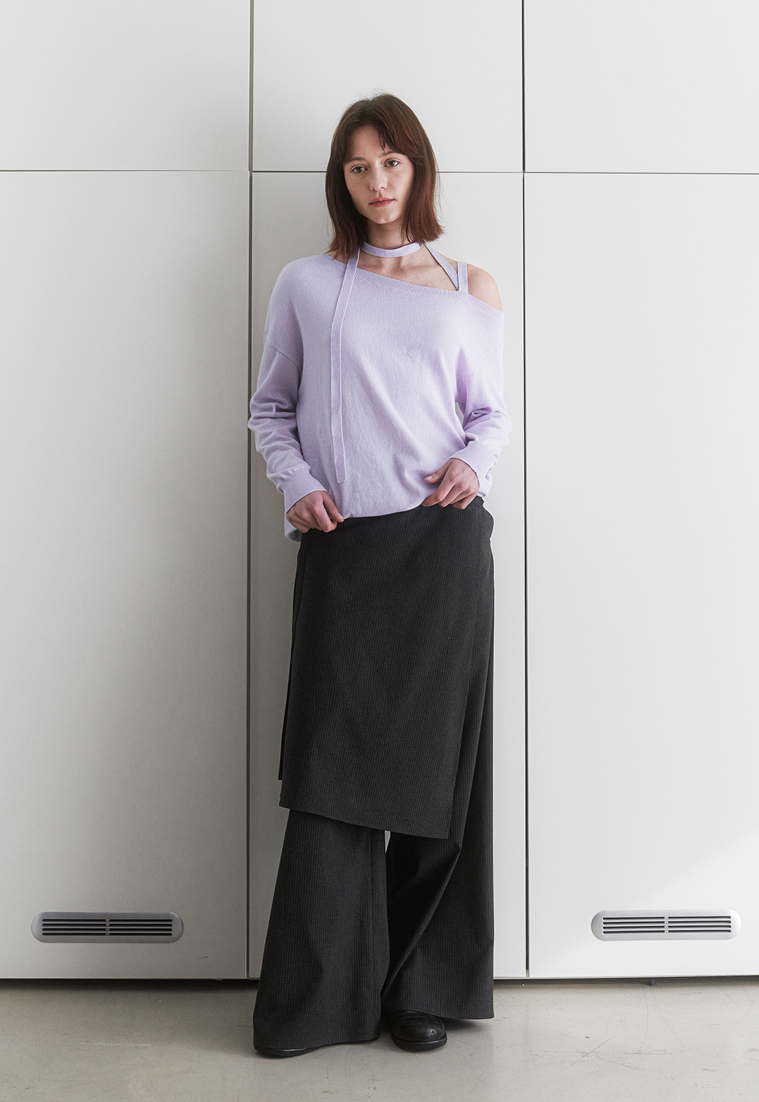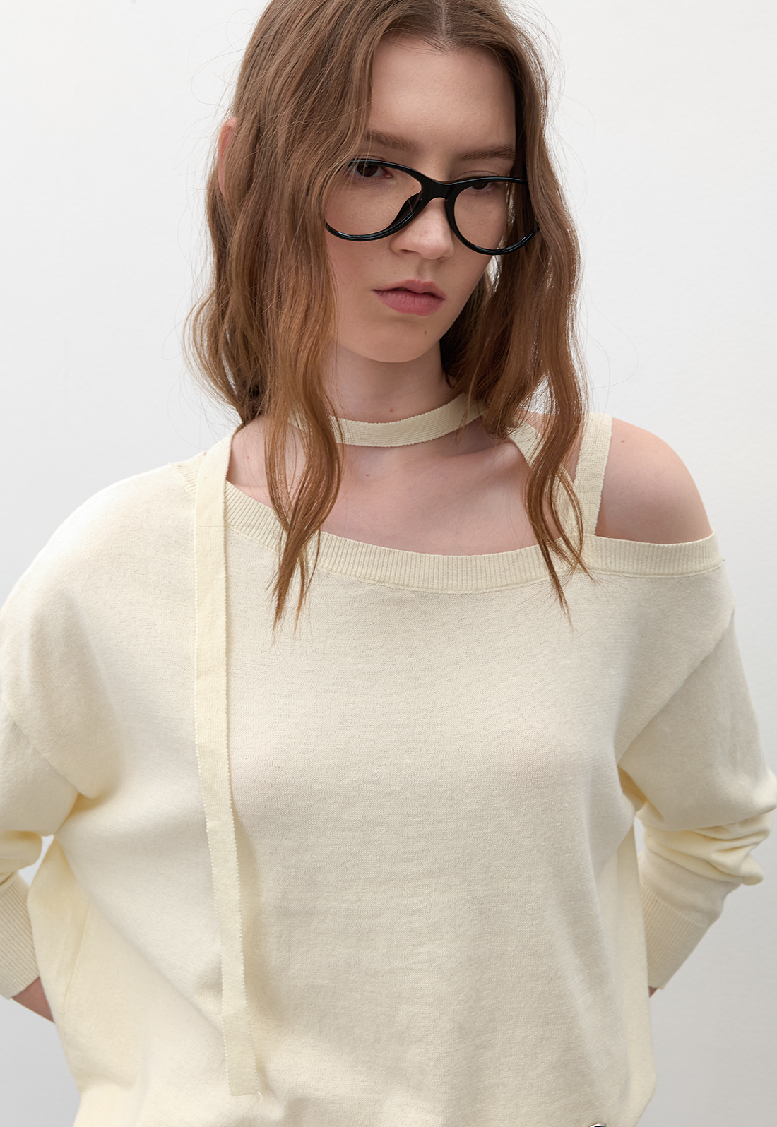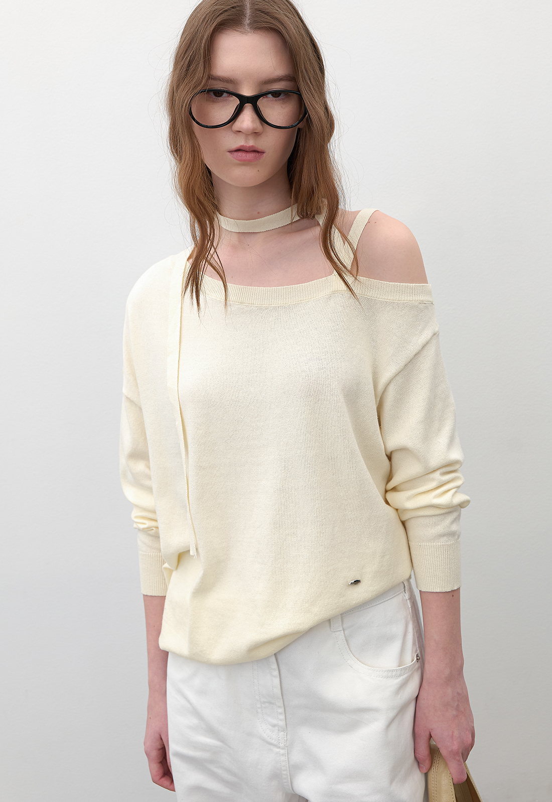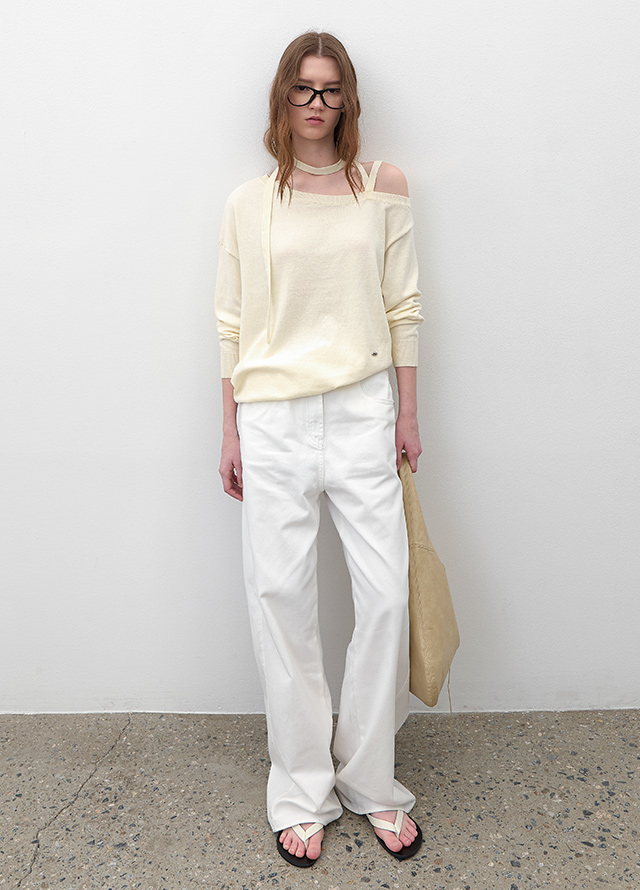 어깨끈이 있어 안정감있게 착용이 가능한 원오프숄더 니트로