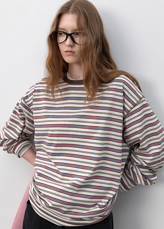 오버사이즈 멀티 스트라이프 티셔츠입니다.