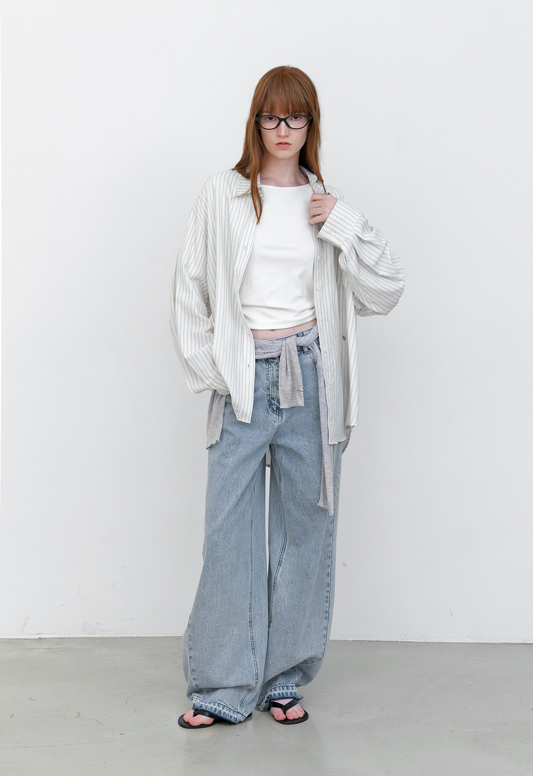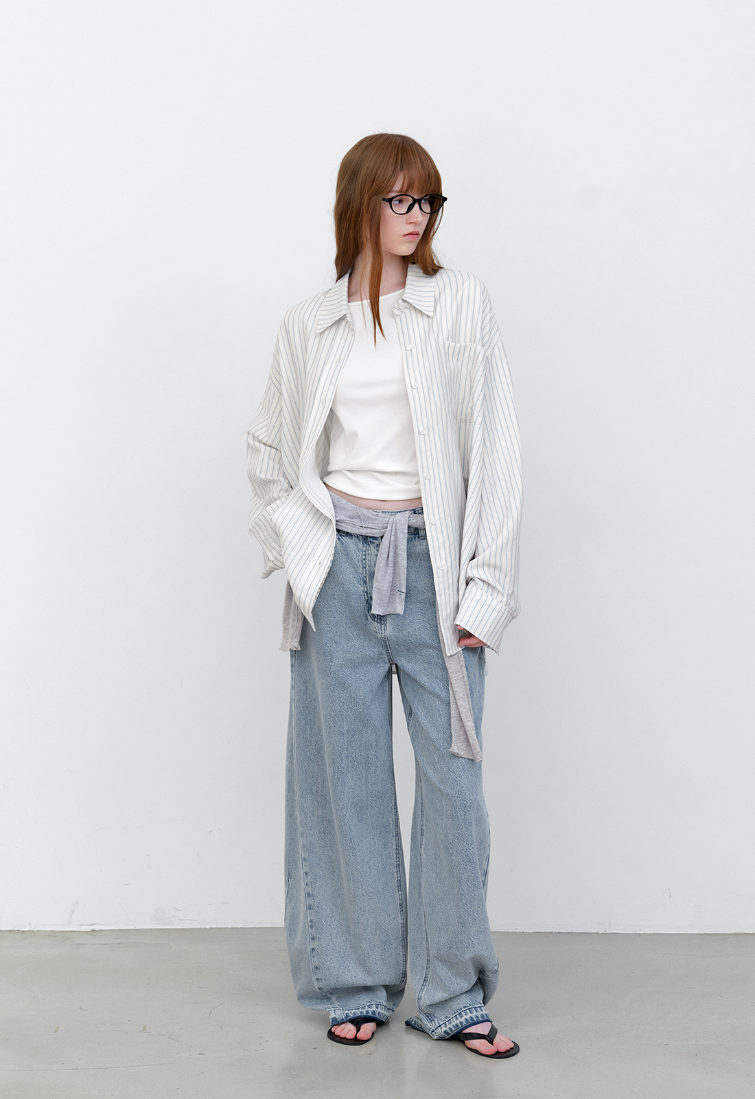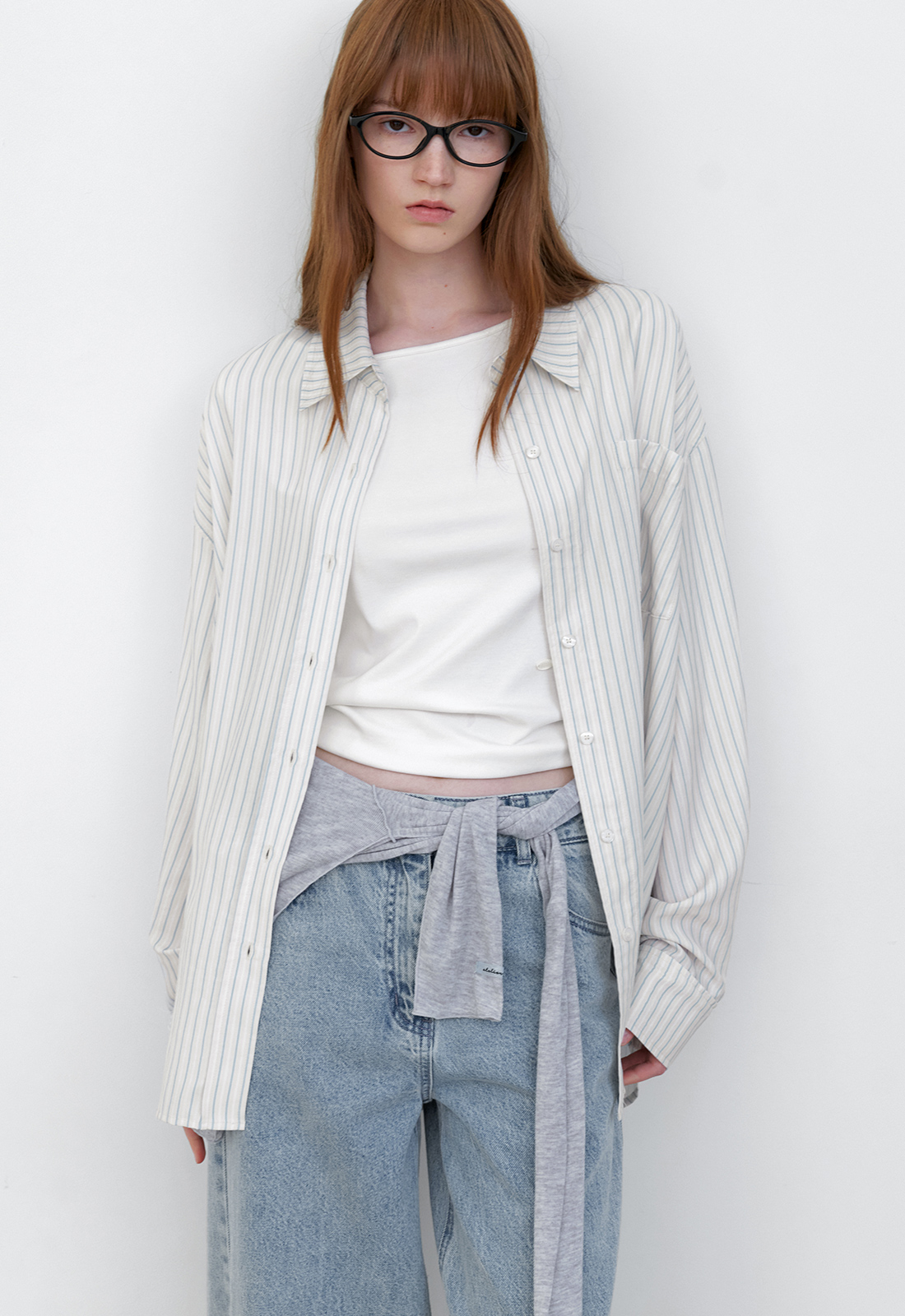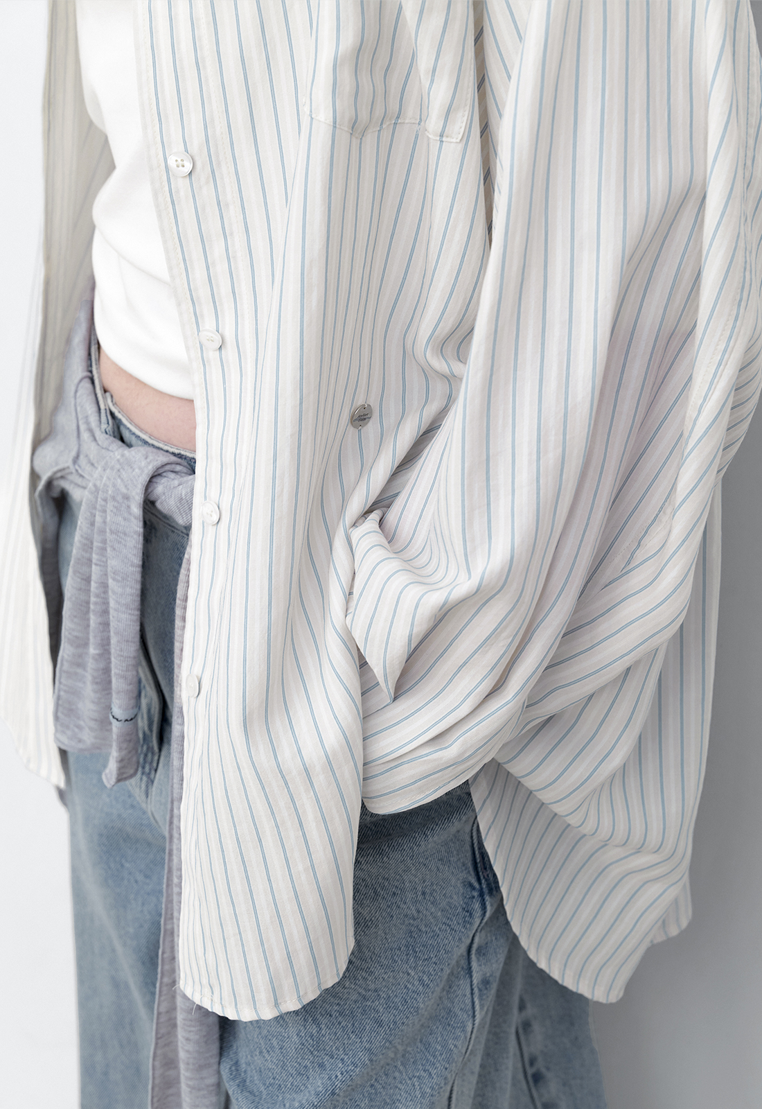 핀 스트라이프 오버사이즈 셔츠입니다.