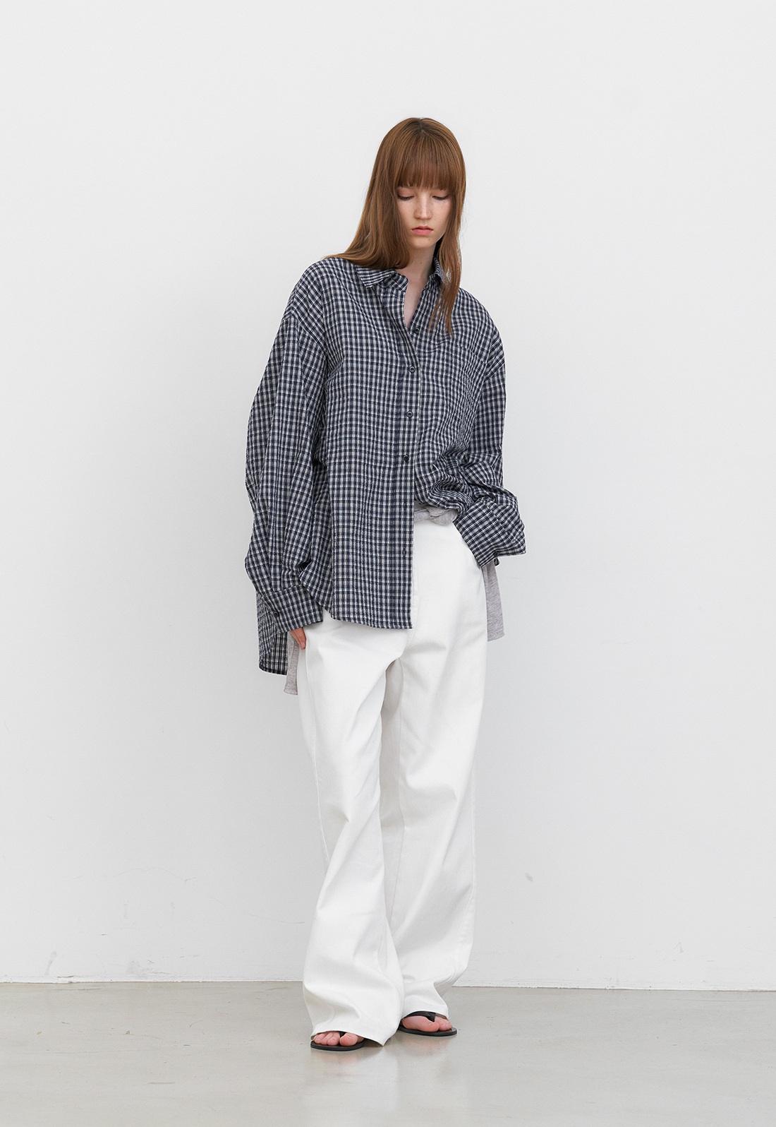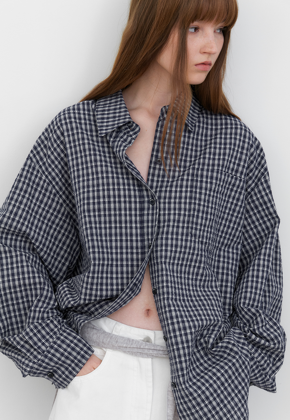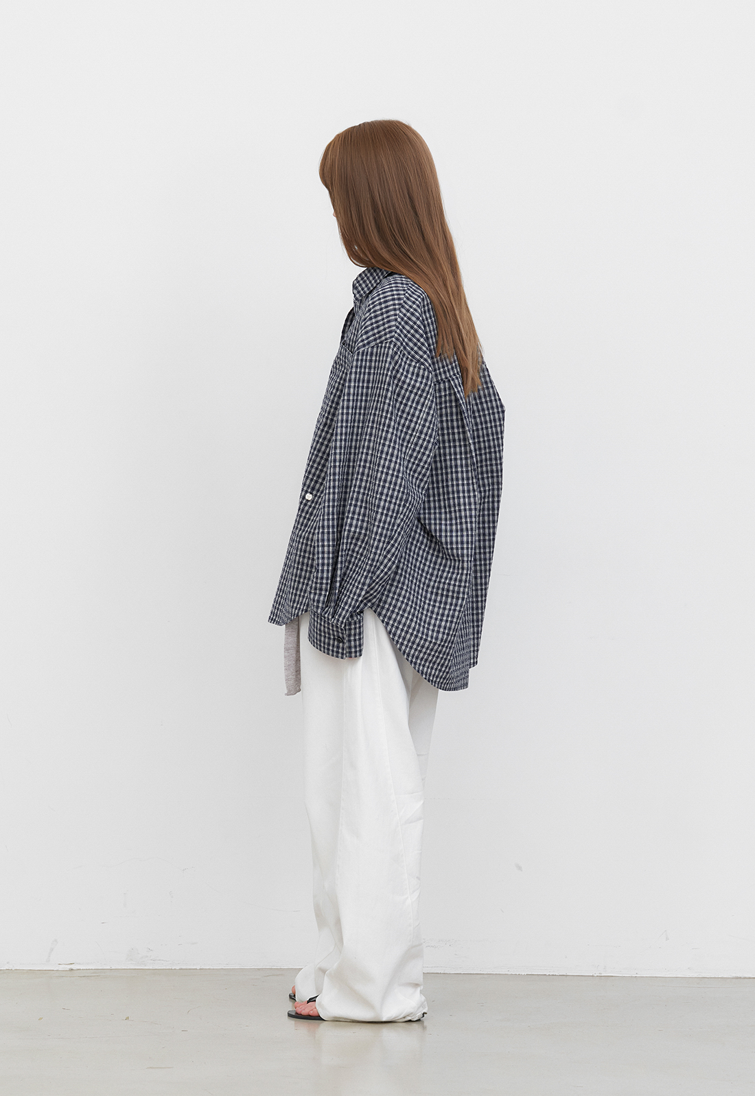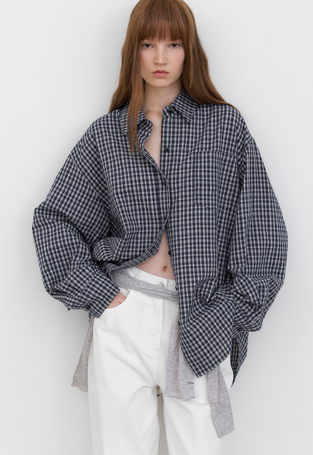 (BL-4387)EMBO GINGHAM CHECK OVERSIZED SHIRT