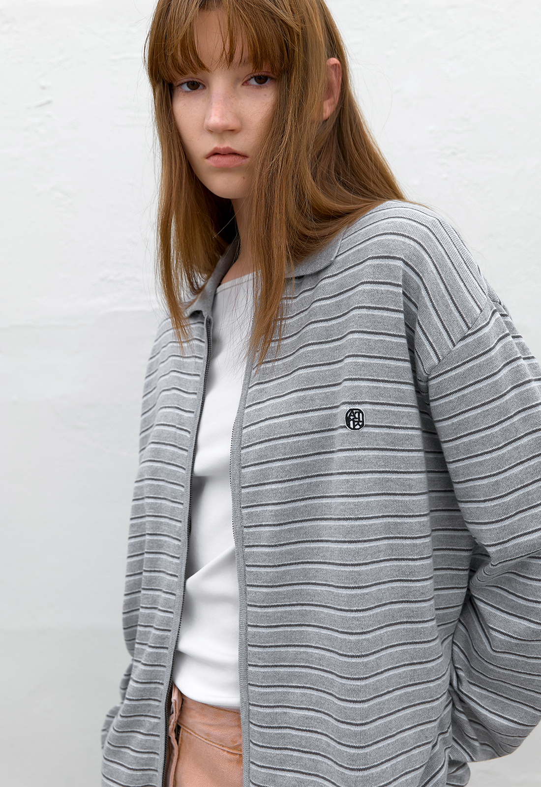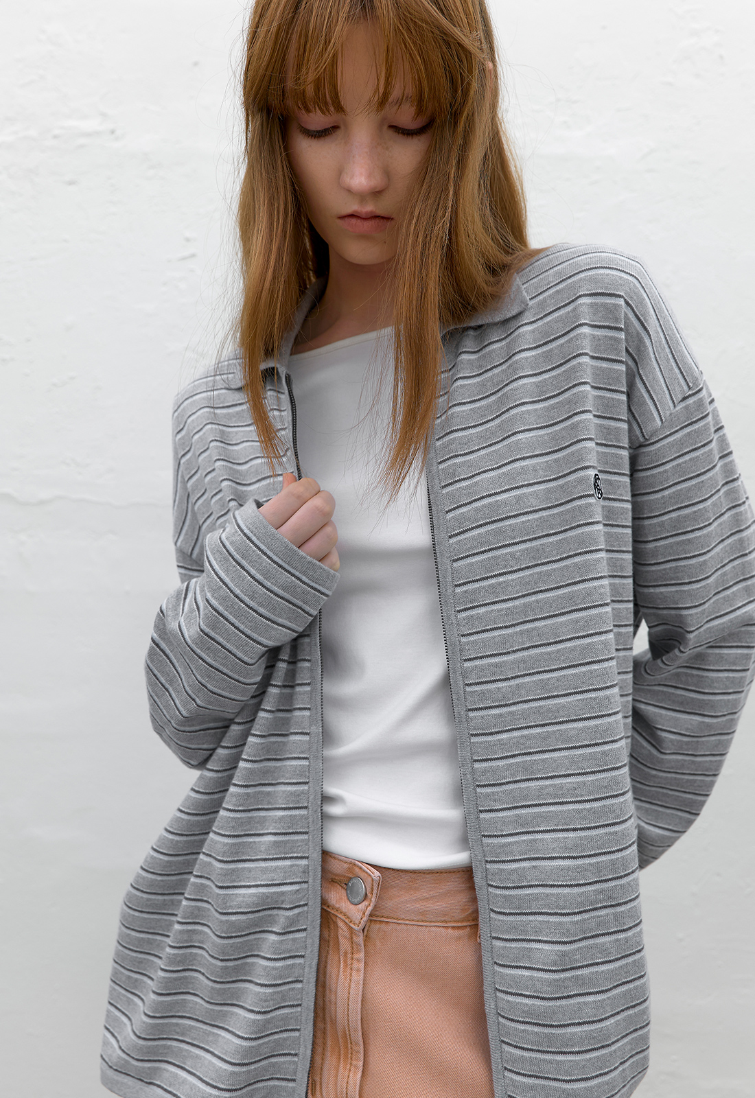 캐주얼한 멀티스트라이프의 오버핏 집업 가디건 입니다.
