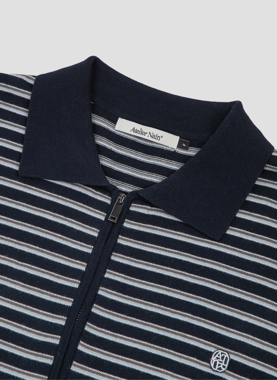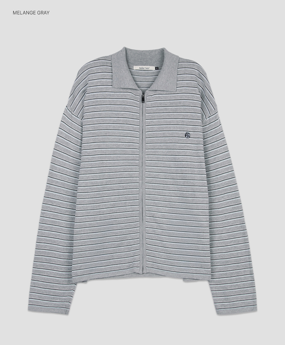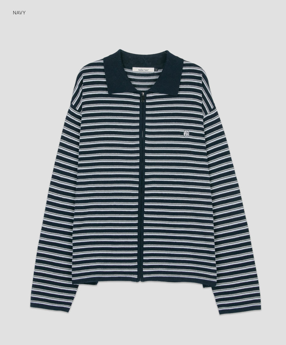 (CD-2250)MULTI STRIPE COLLAR ZIP-UP CARDIGAN