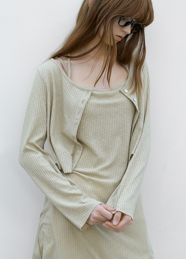 (OP-6317)CARDIGAN SET-UP RIBBEN DRESS S