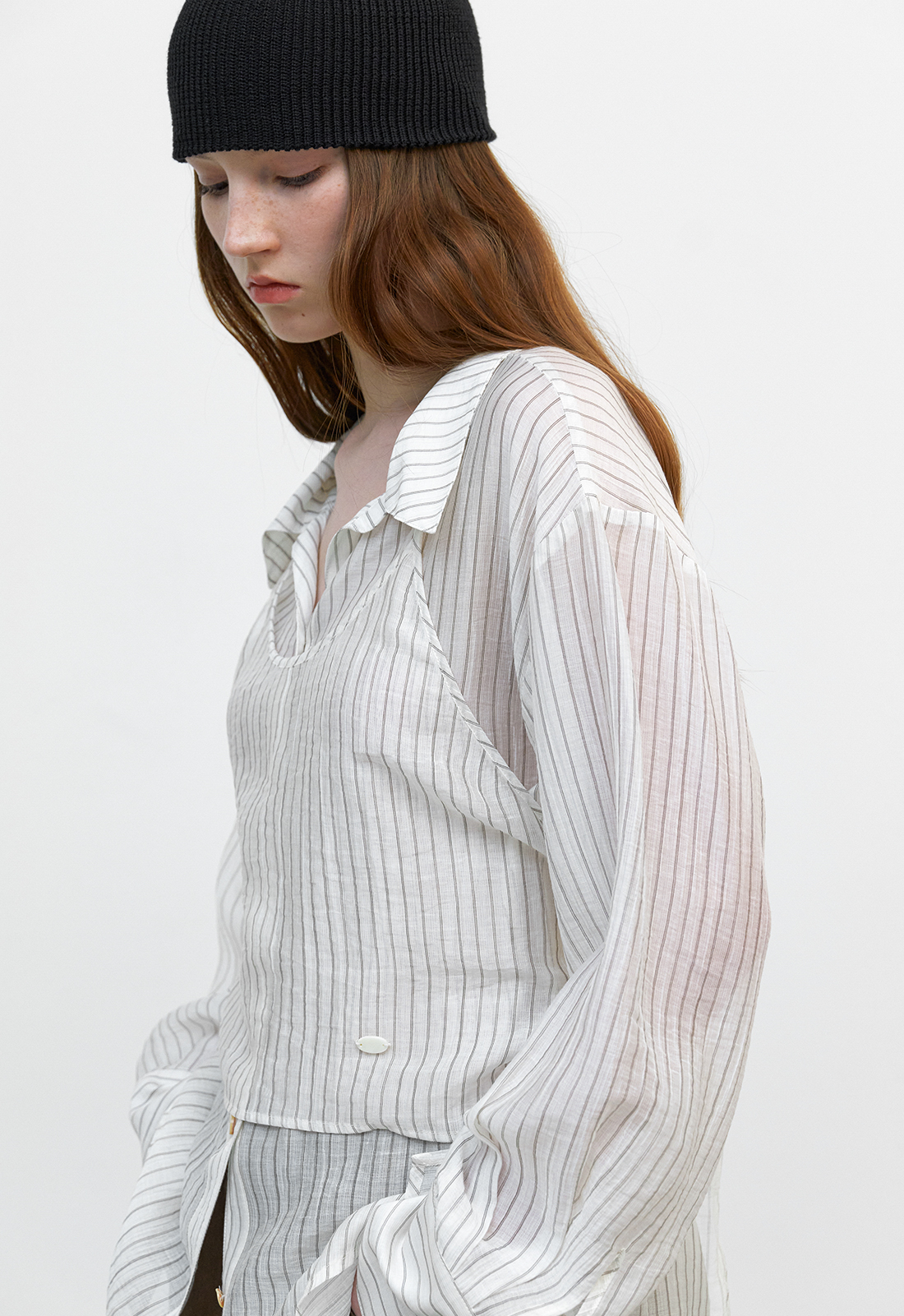 가볍고 쉬어한 소재로 간절기 이너로 활용하거나, 단독으로도 멋스럽게 착용할 수 있는 아이템입니다.