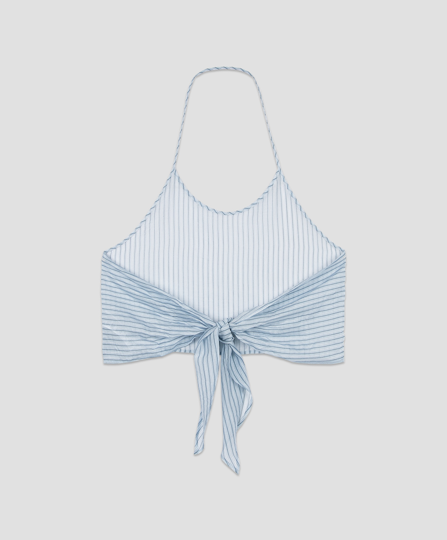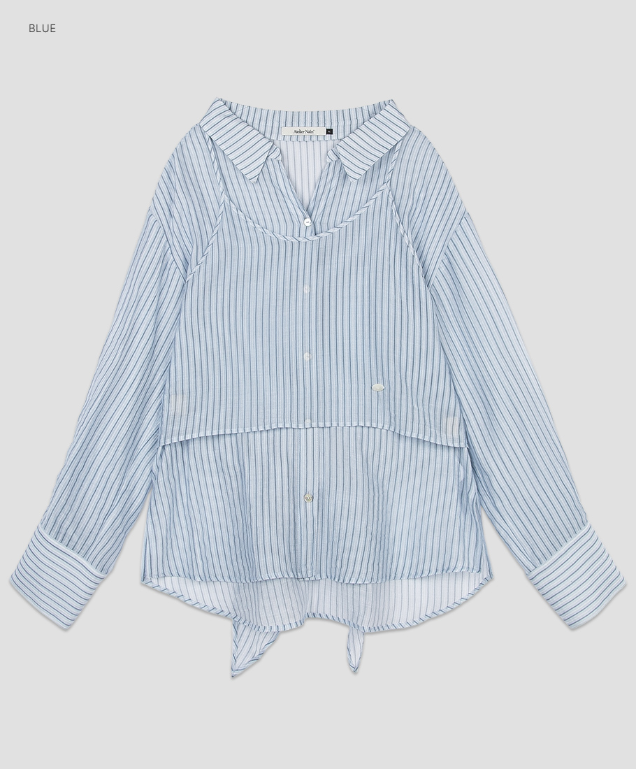 (BL-4388)STRIPE RIBBON BUSTIER BLOUSE