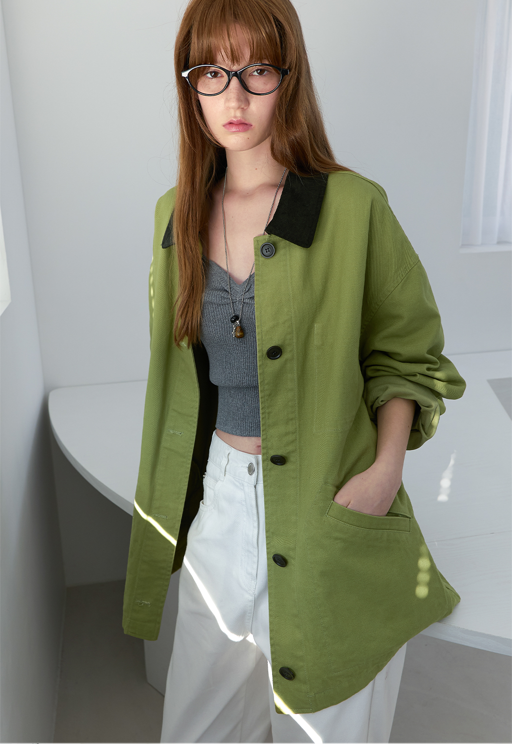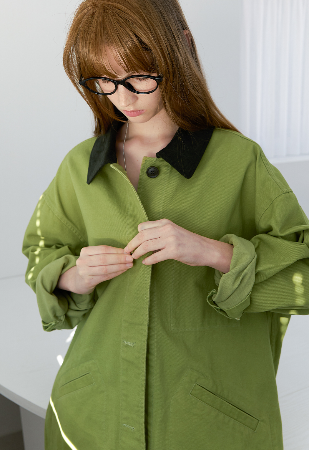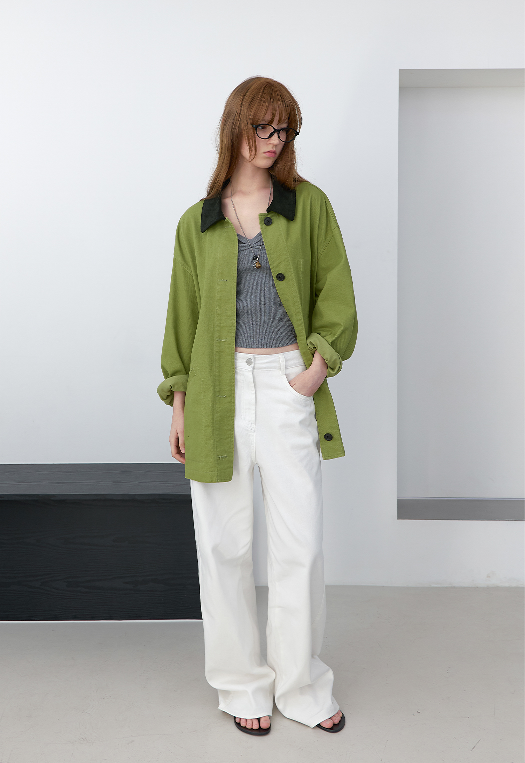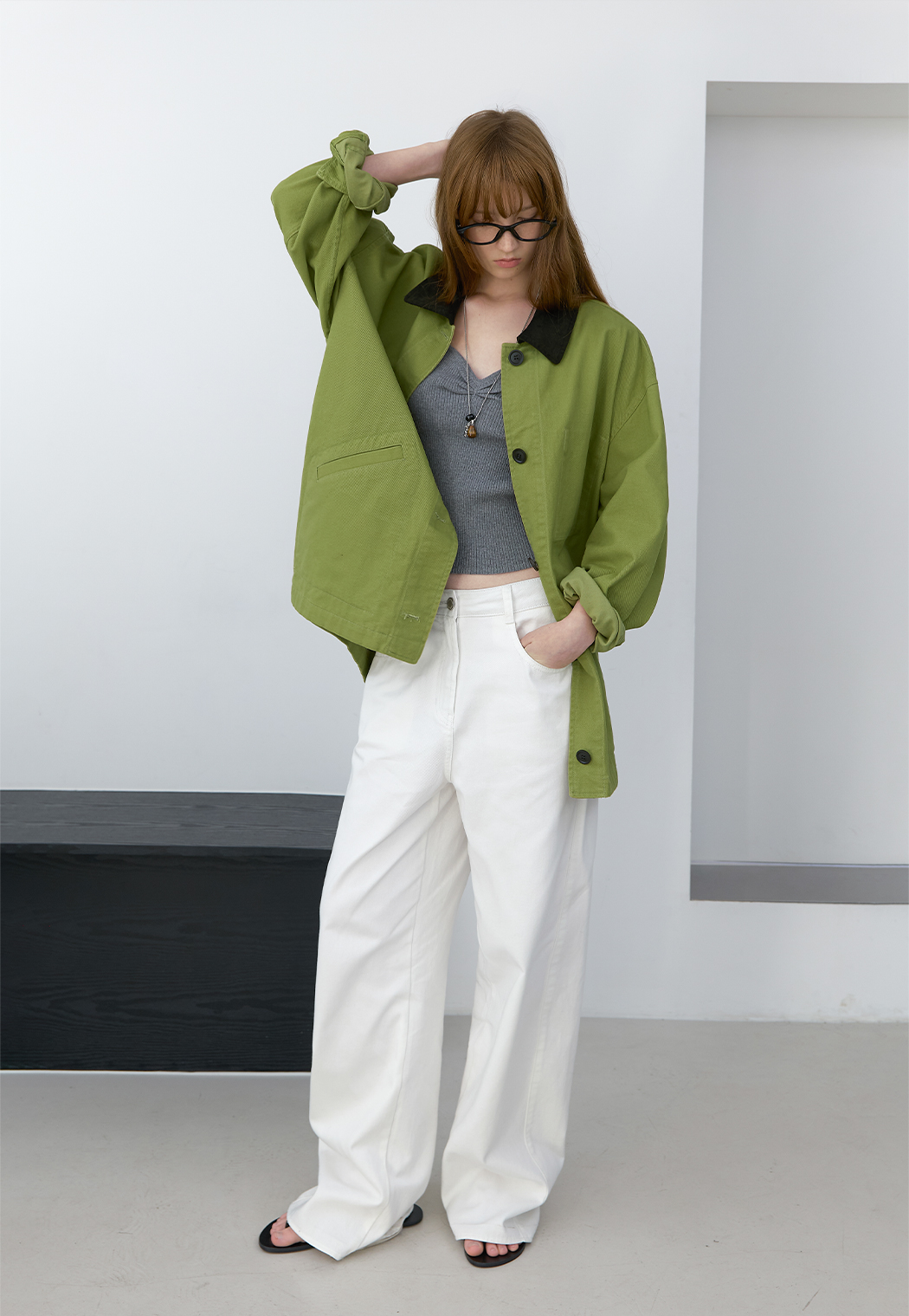 올리브 컬러로 시즌 무드를 완성했습니다.