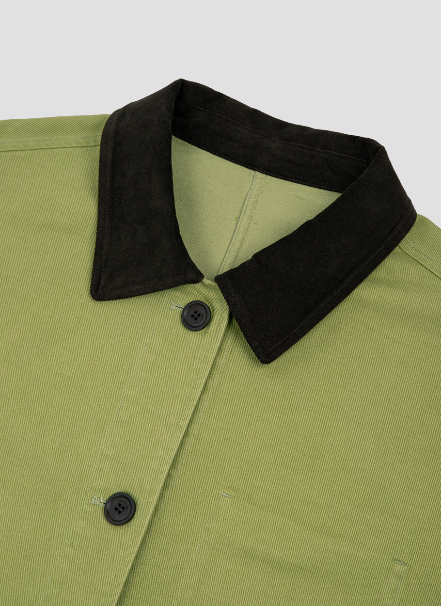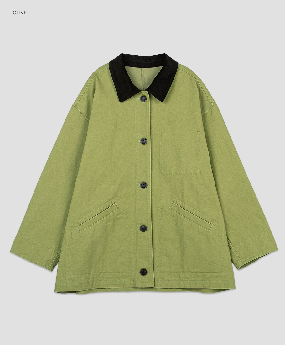 (CT-1478)STITCH COUDUROY COLLAR OLIVE JACKET