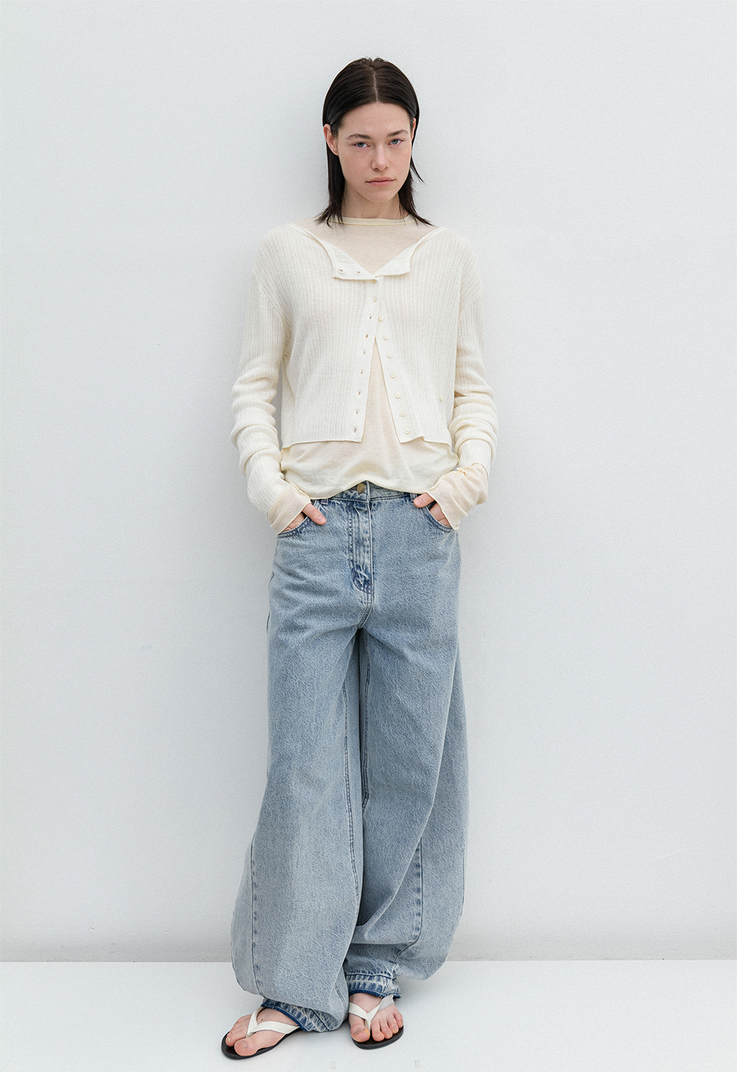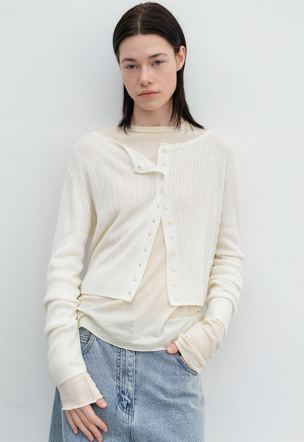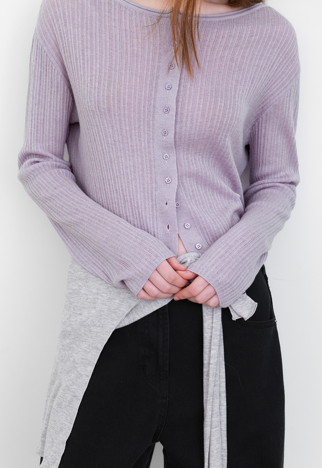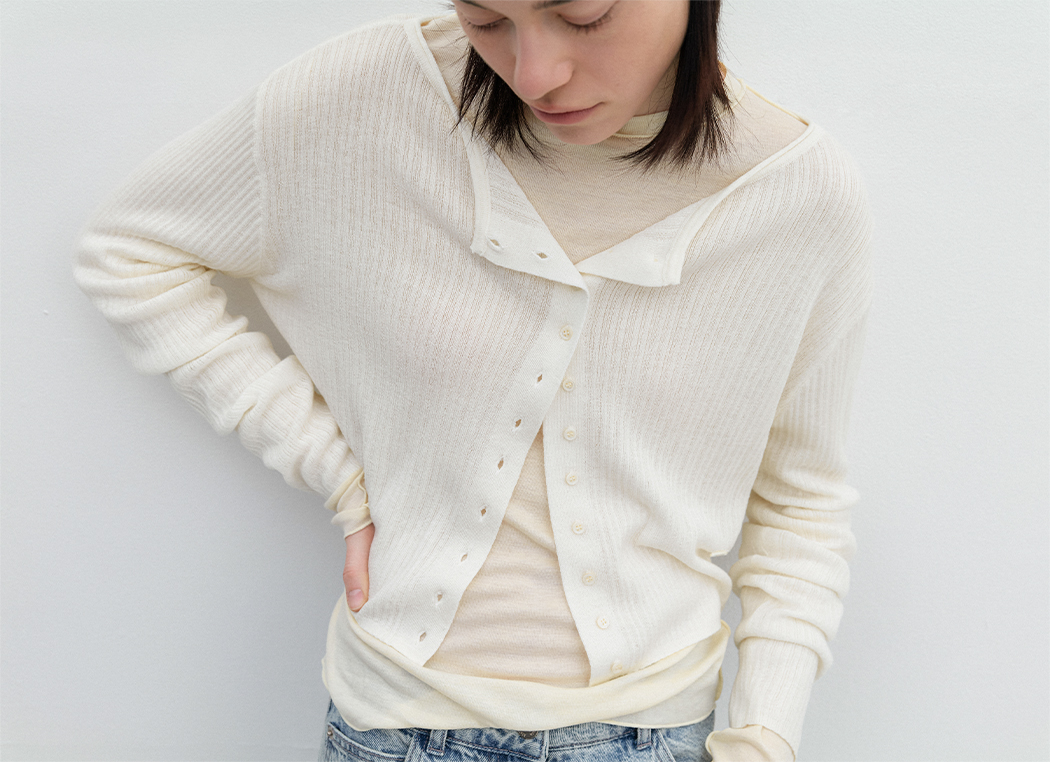 간절기에 입기 좋은 시어 가디건으로, 아우터 안에 레이어드해