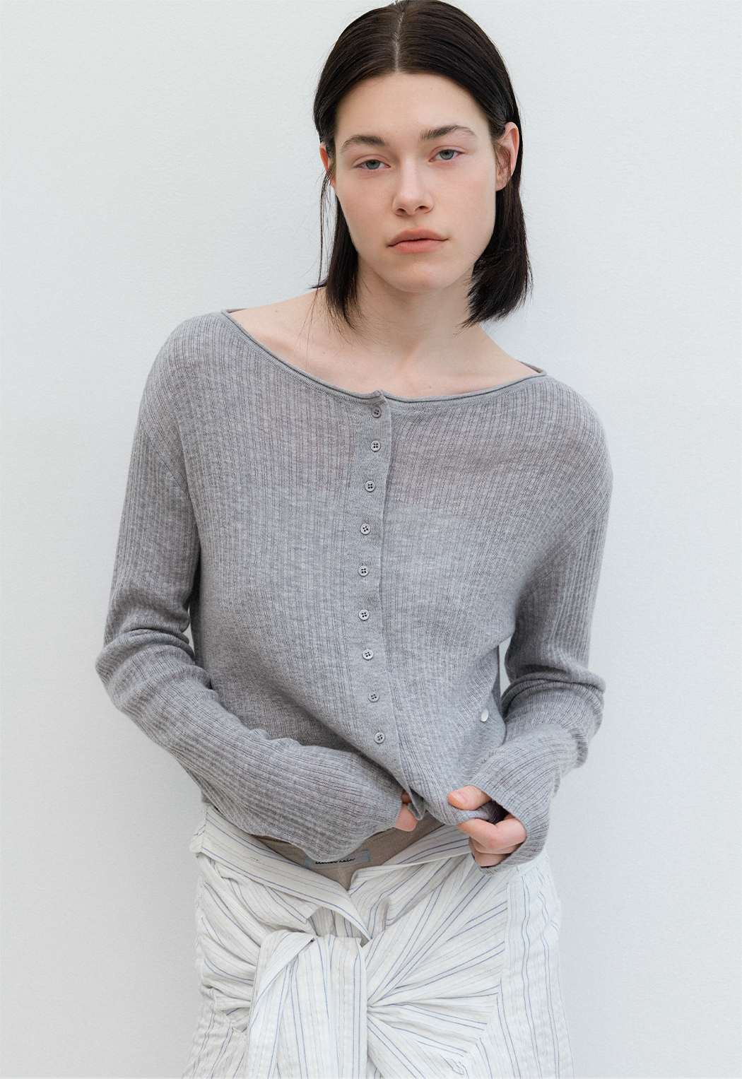 (CD-2257)AN SHEER FRESH CROP BOAT NECK CARDIGAN