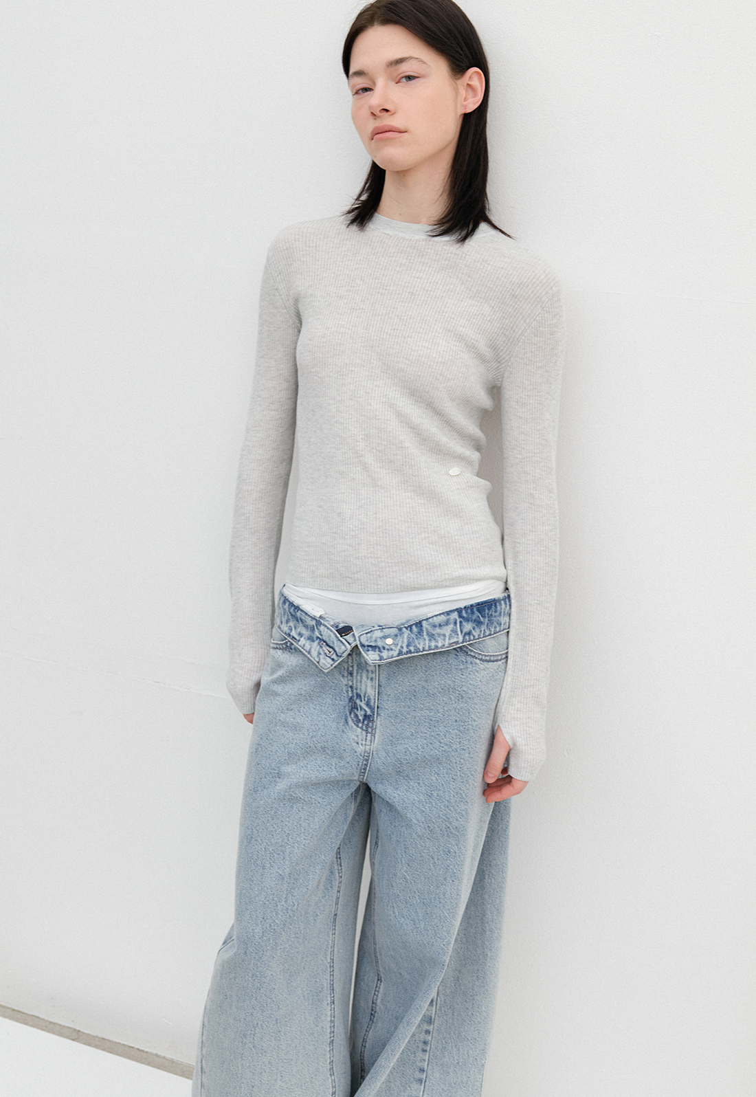 (T-7190)AN SHEER FRESH RIBBED SLIM KNIT