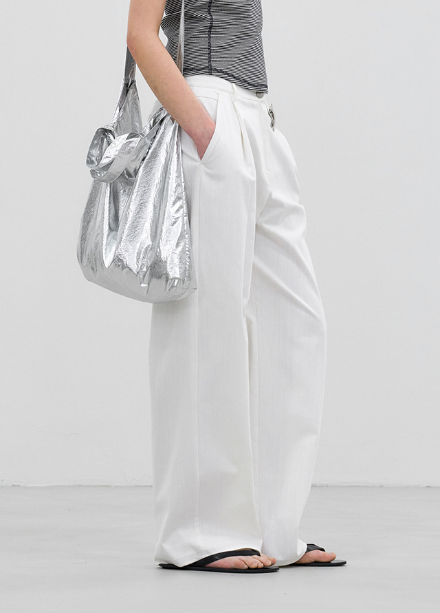 루즈 핏 커브드 핀턱 팬츠입니다.