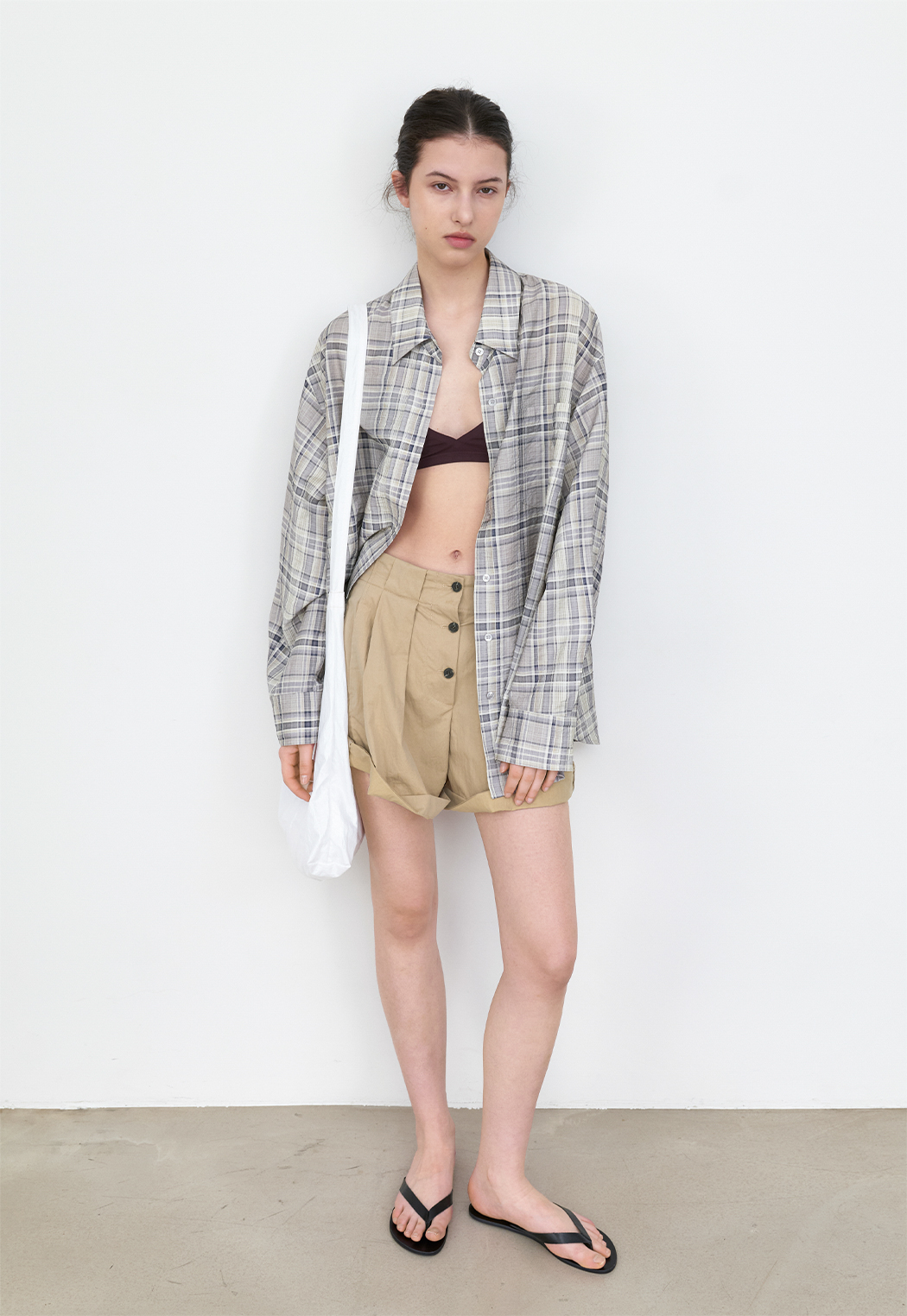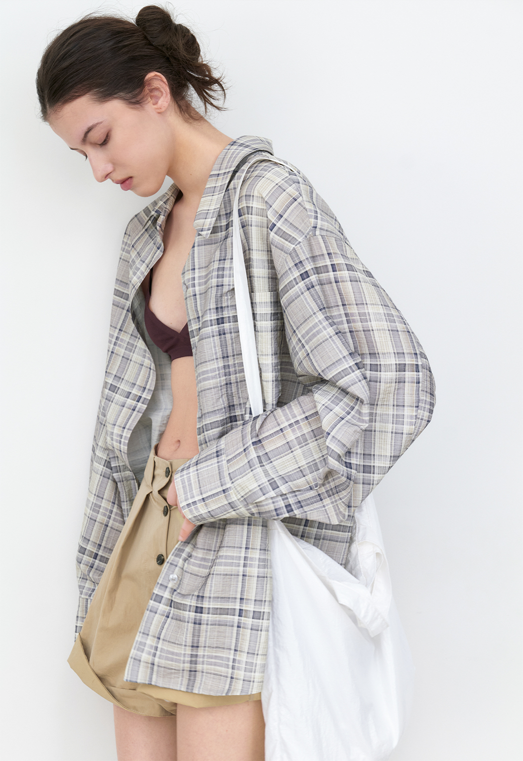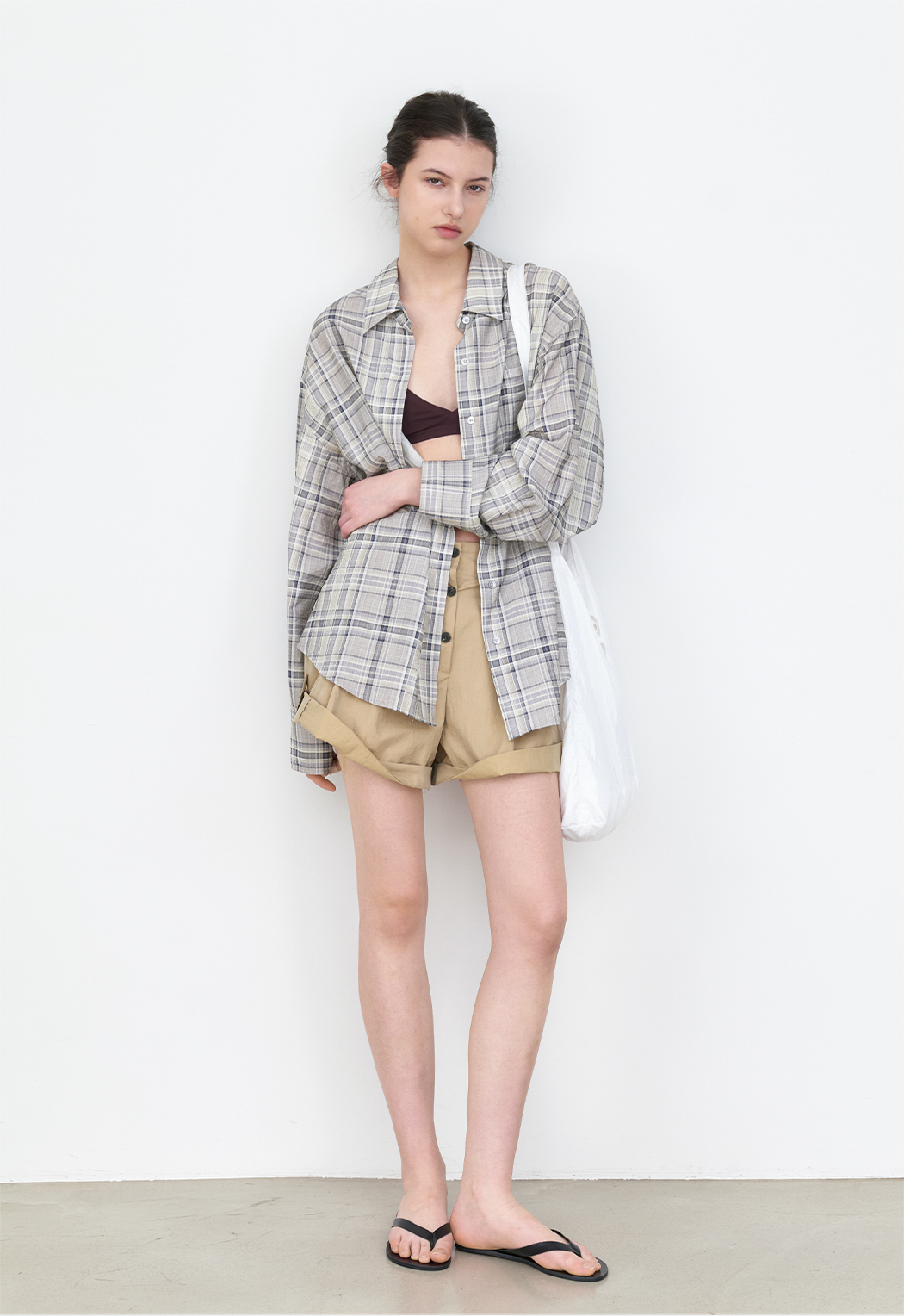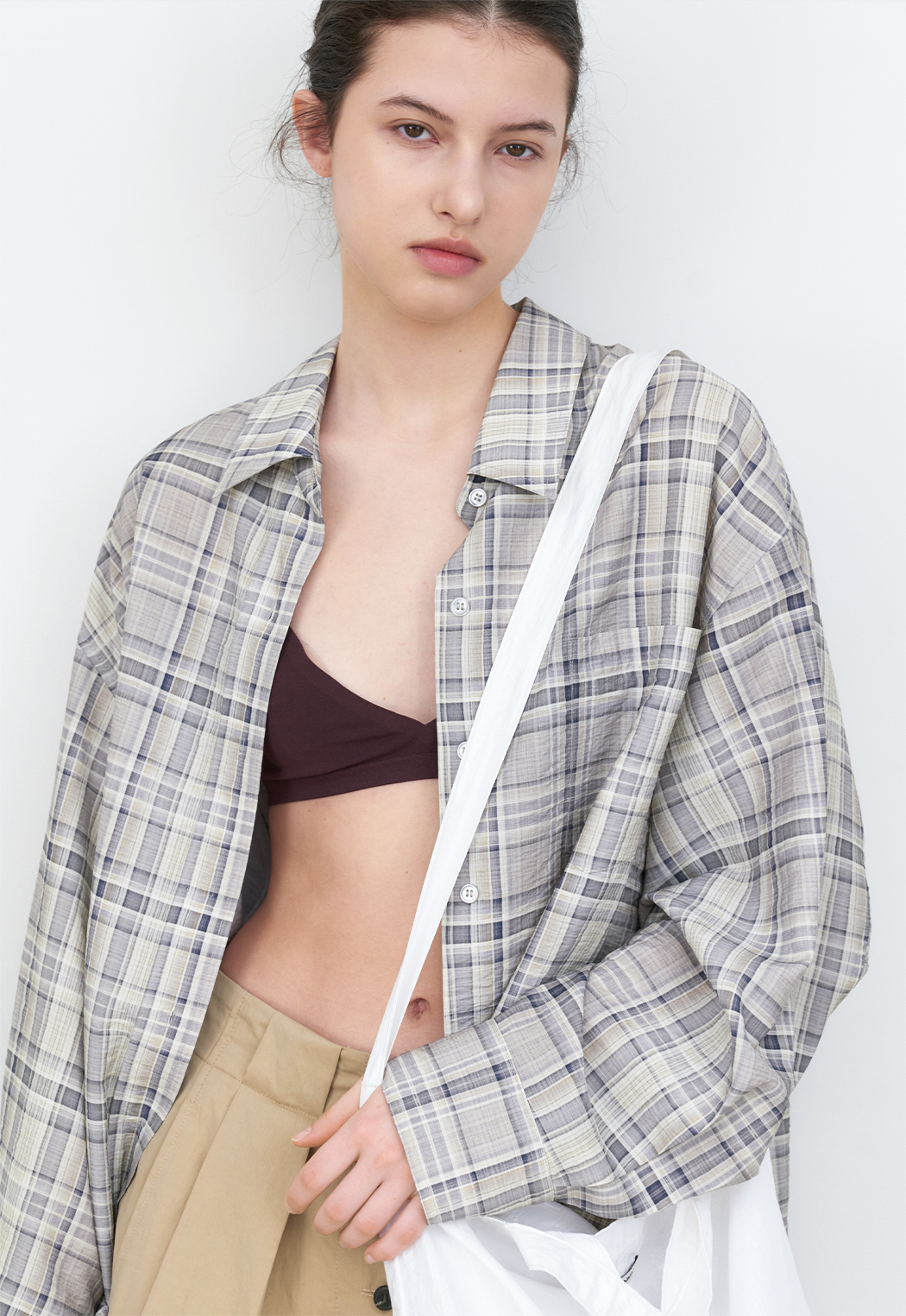 체크 패턴 오버사이즈 셔츠입니다.