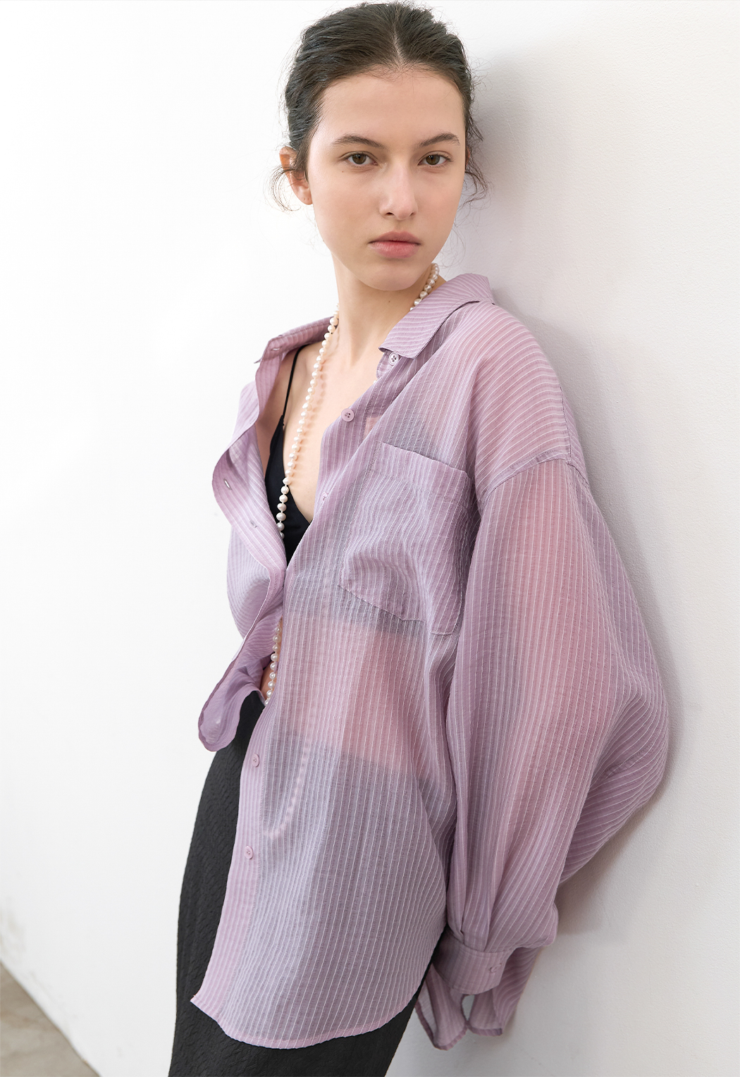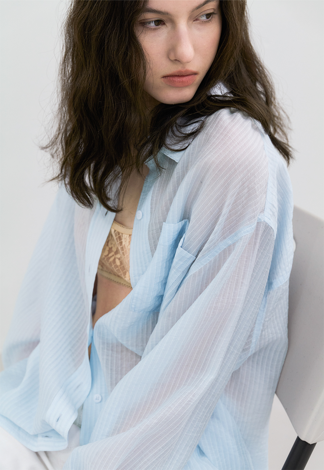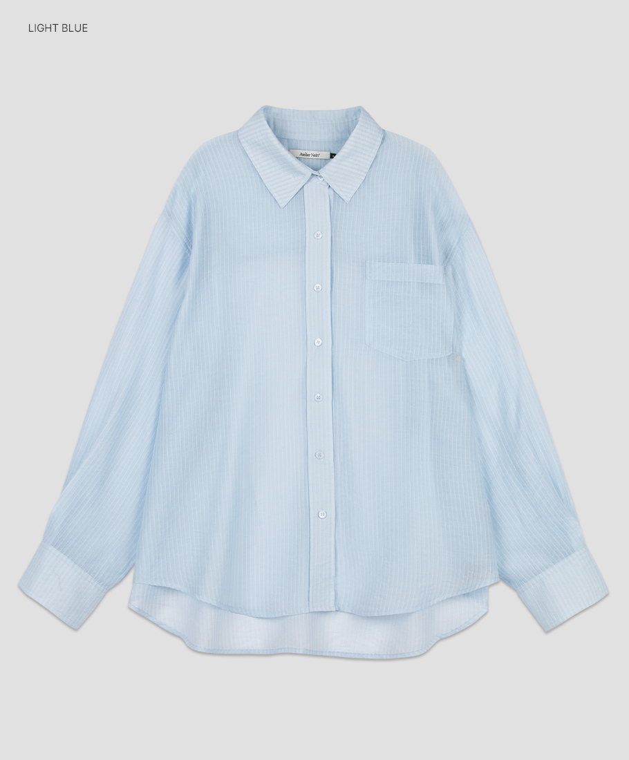 (BL-4412)SHEER STRIPE OVERSIZED SHIRT
