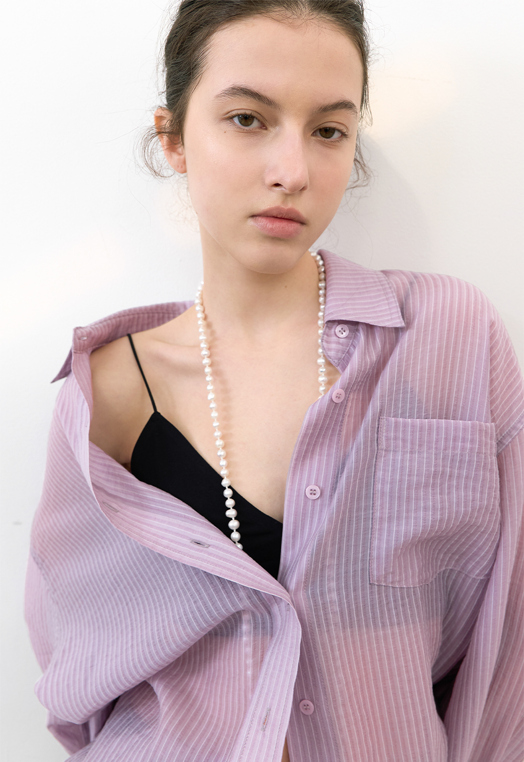 은은한 스트라이프 패턴이 돋보이는 오버사이즈 셔츠입니다.