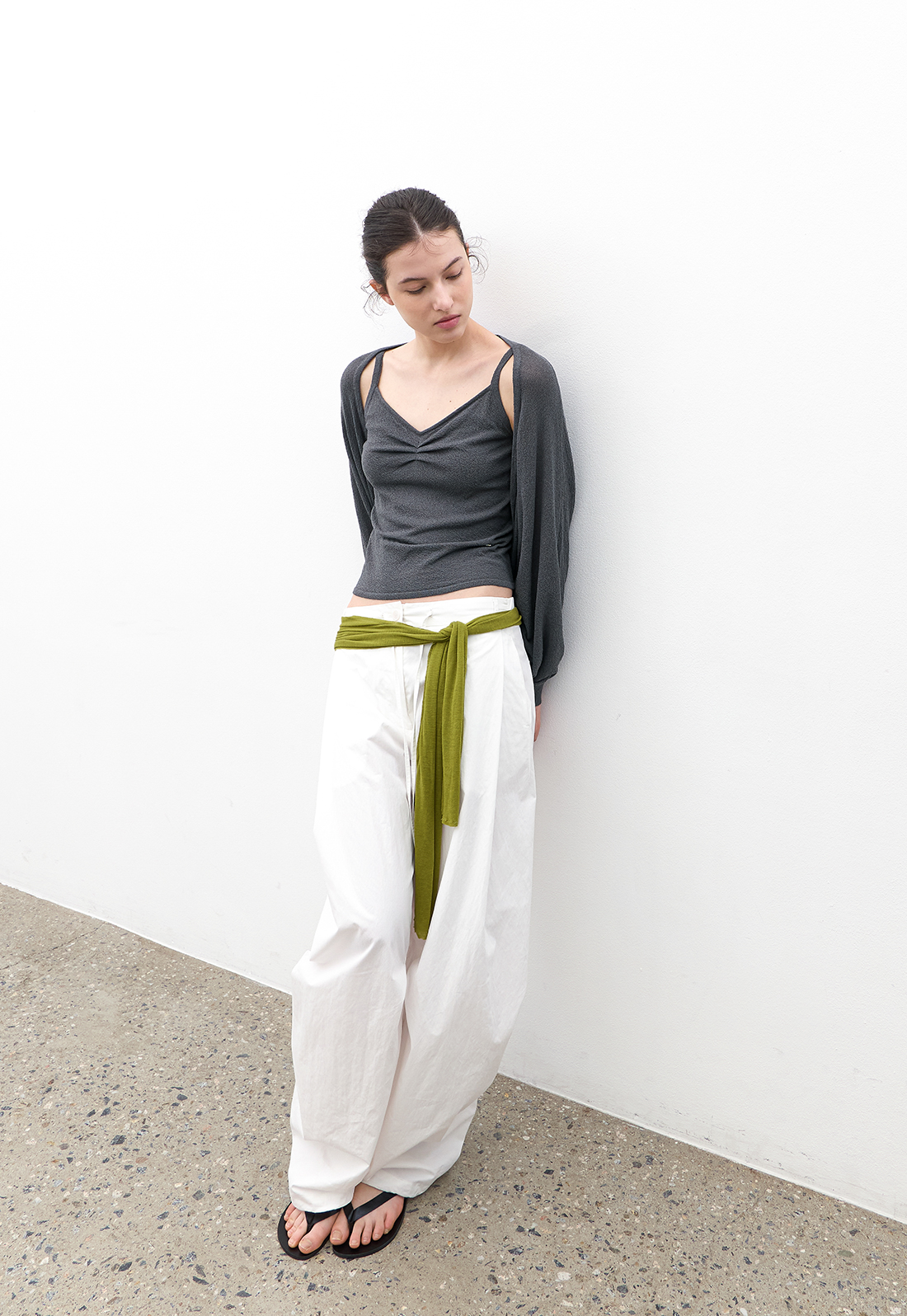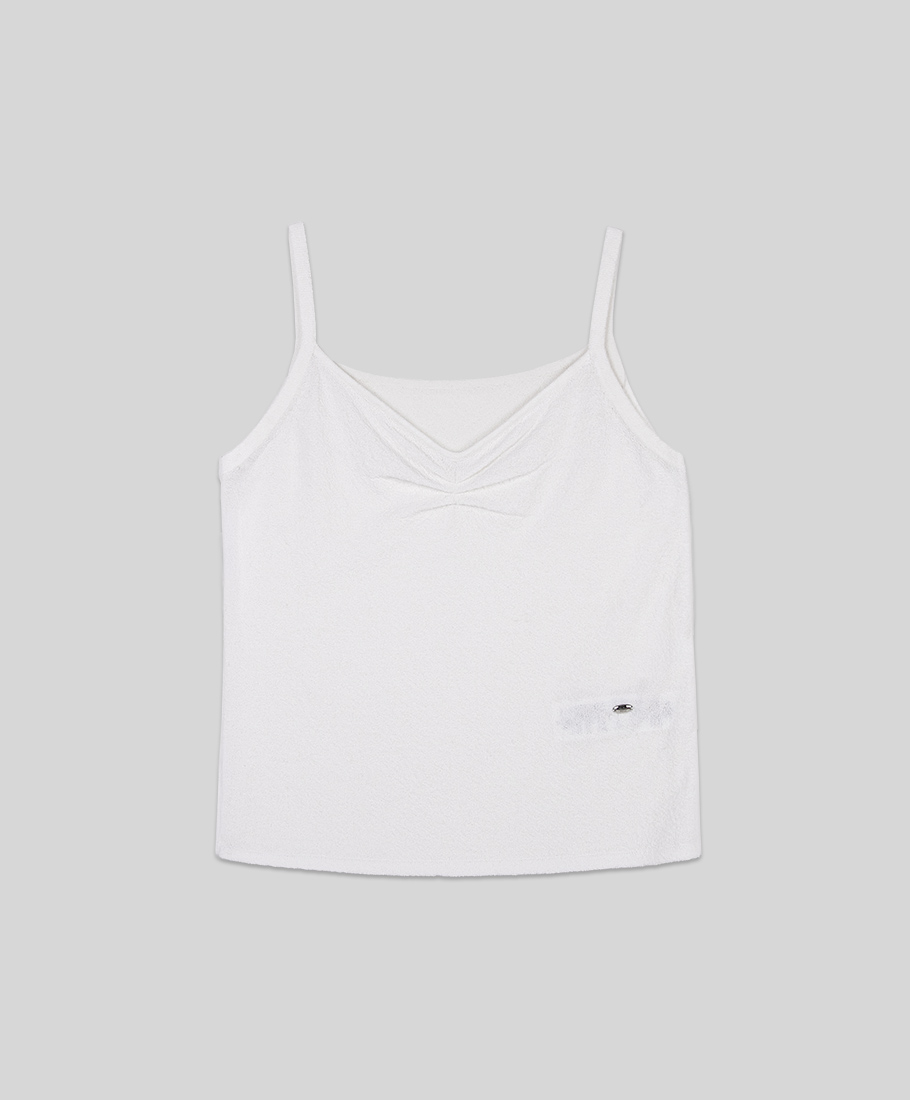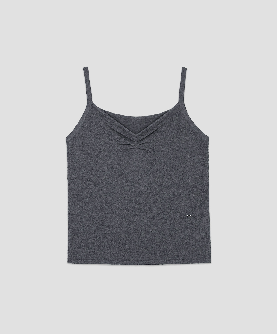 이너 탑의 셔링 디테일이 페미닌한 무드를 더하며,