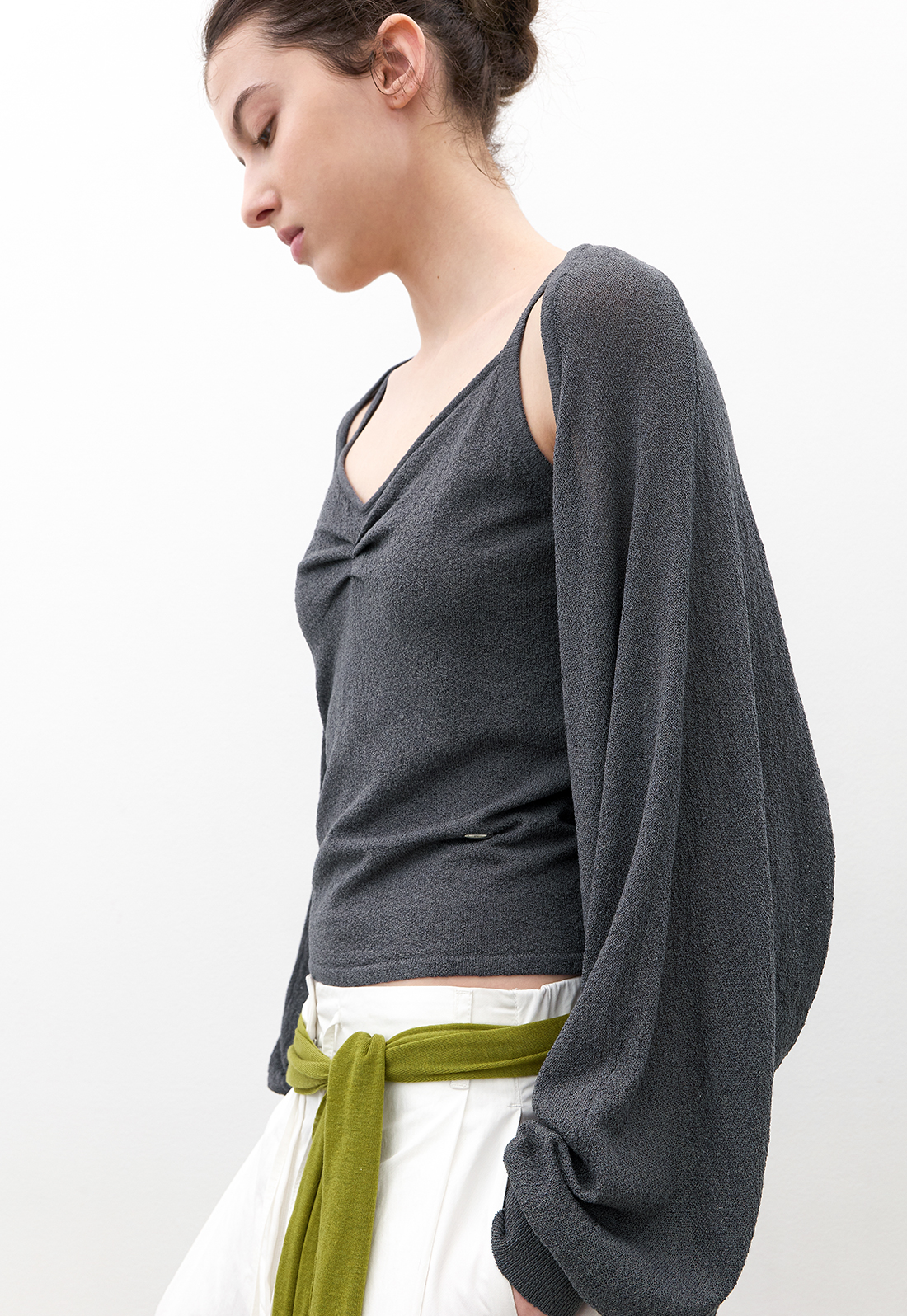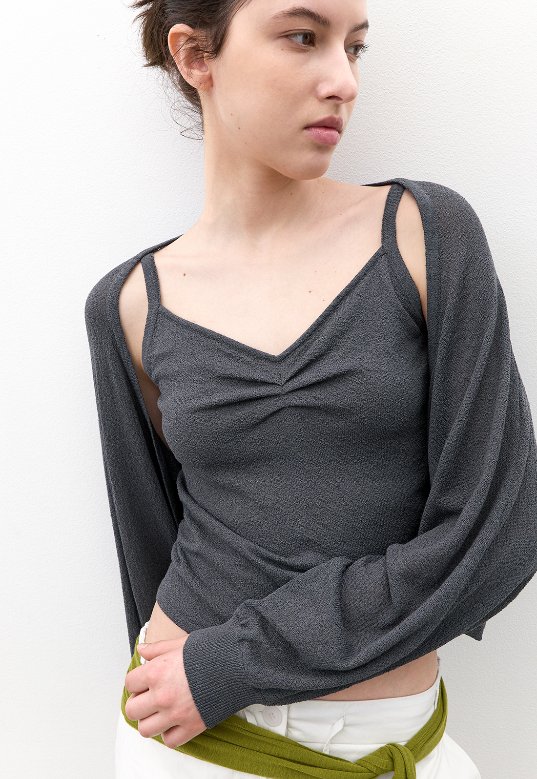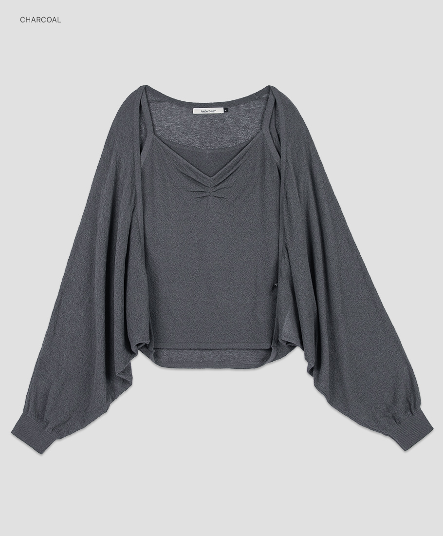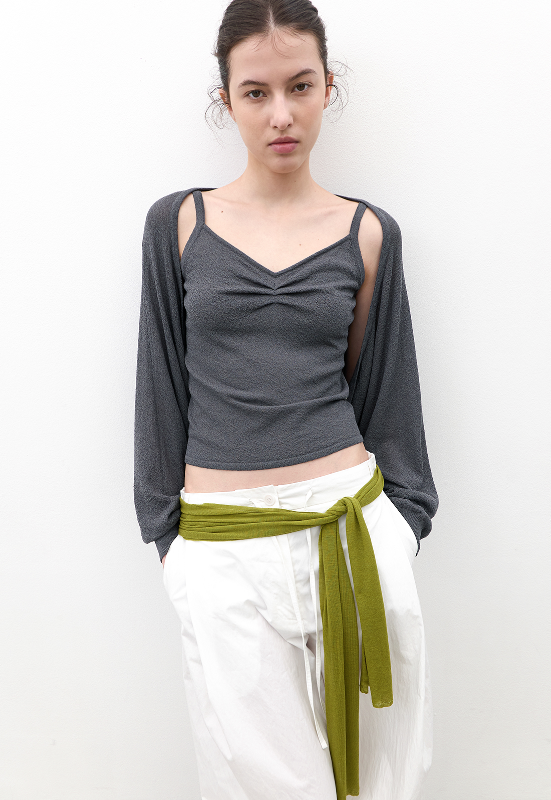 (CD-2265)BOUCLE SHIRRING BOLERO&TOP SET