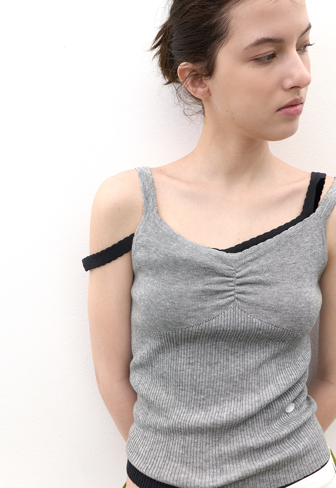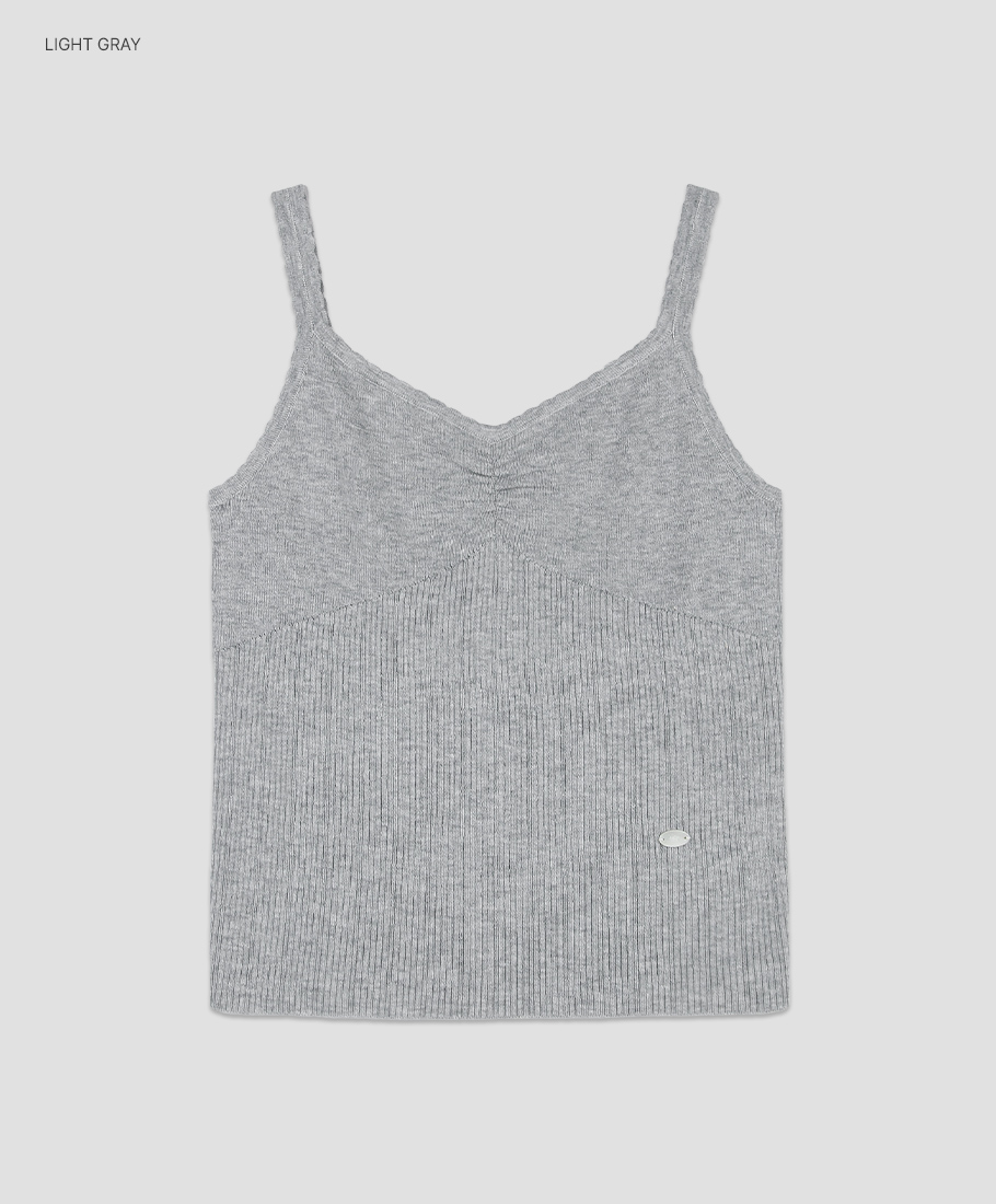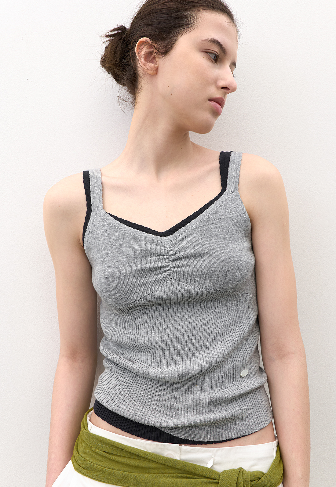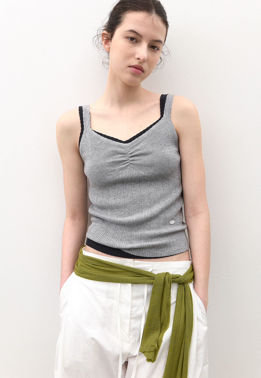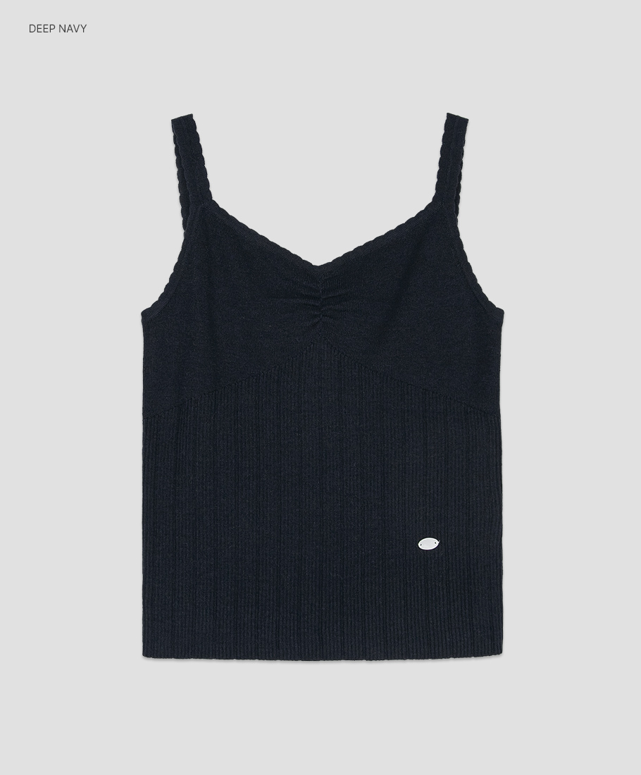 (T-7248)SCALLOP SHIRRING RIBBED SET-UP KNIT TOP