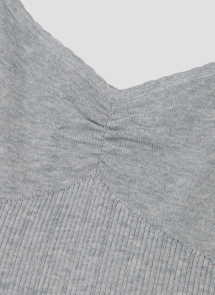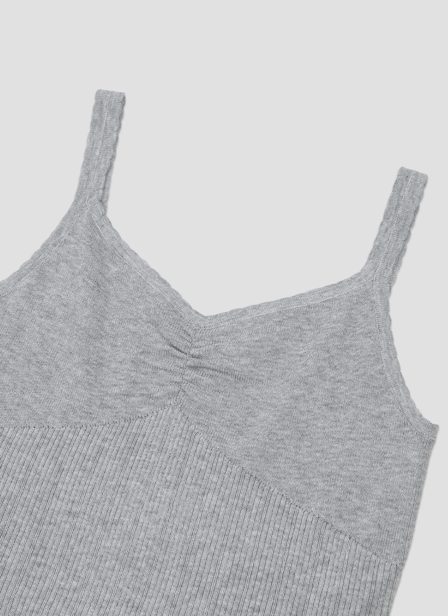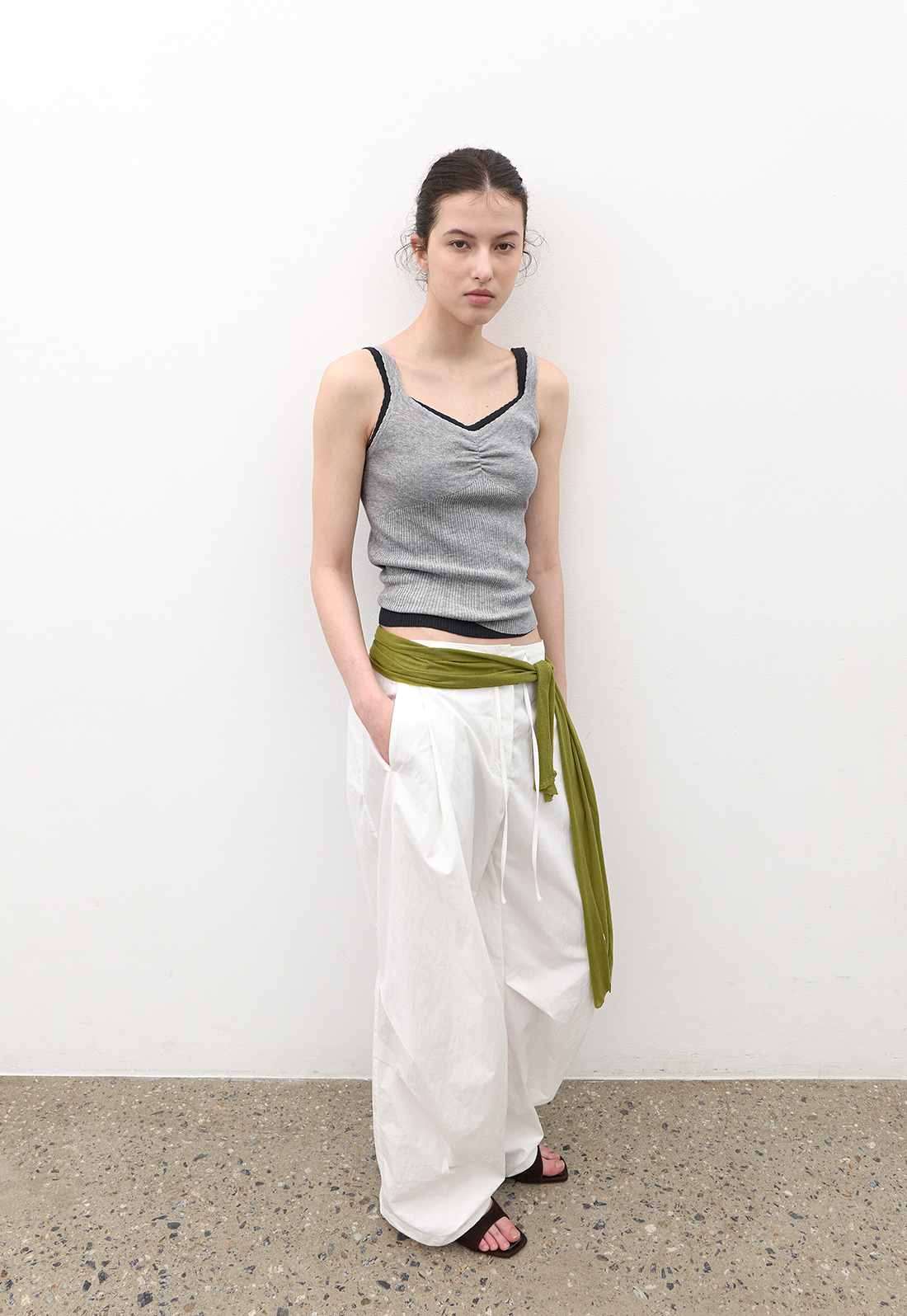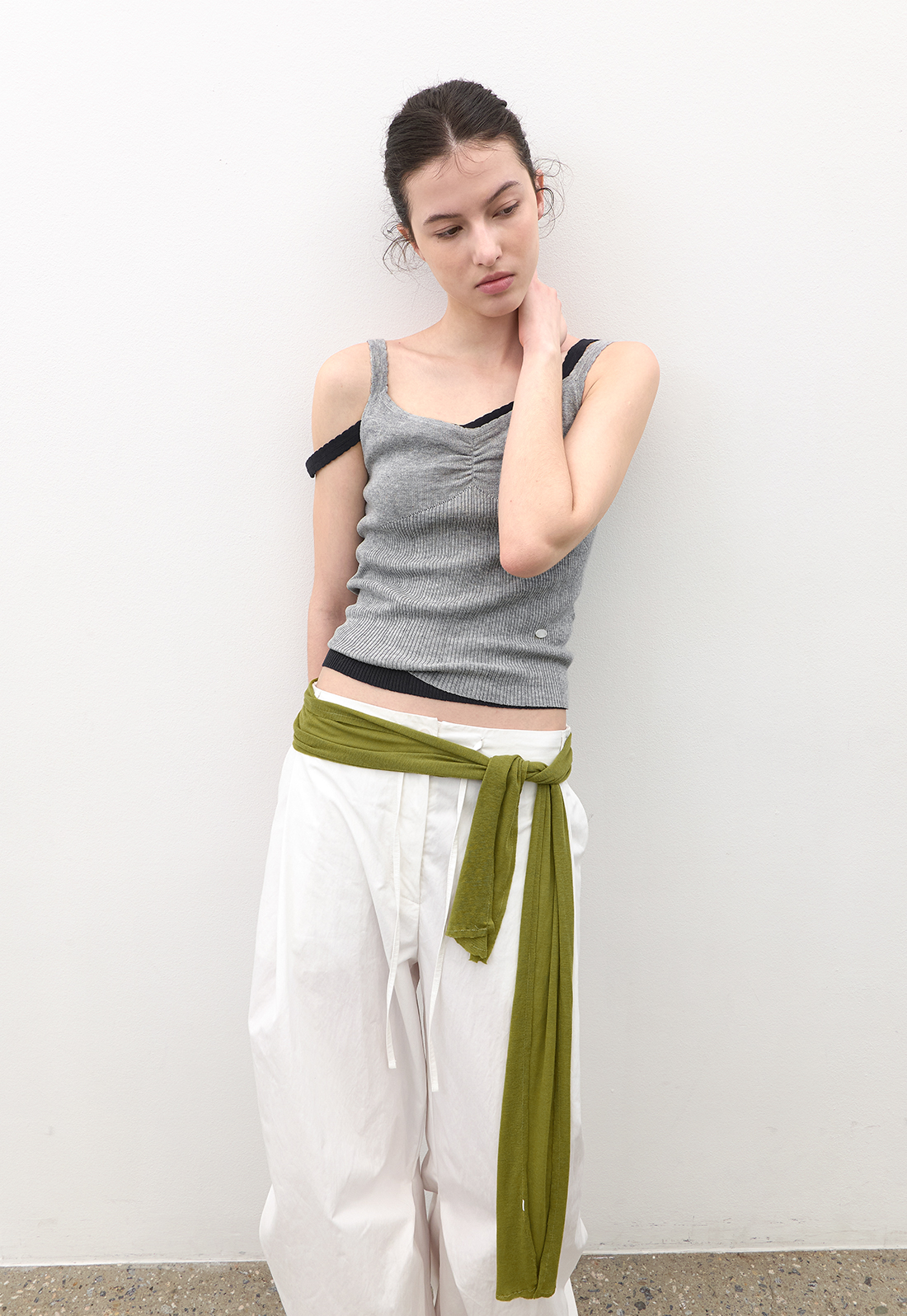(T-7248)SCALLOP SHIRRING RIBBED SET-UP KNIT TOP