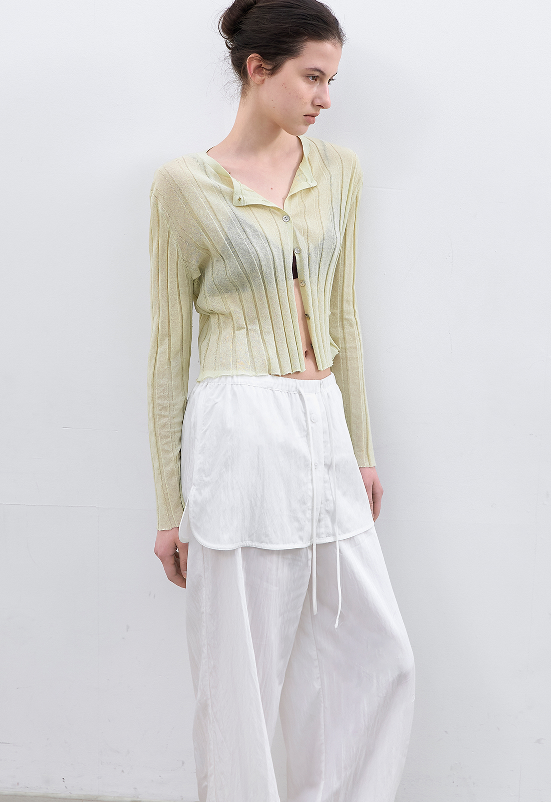 스커트 레이어드 디자인이 돋보이는 버튼 팬츠입니다.