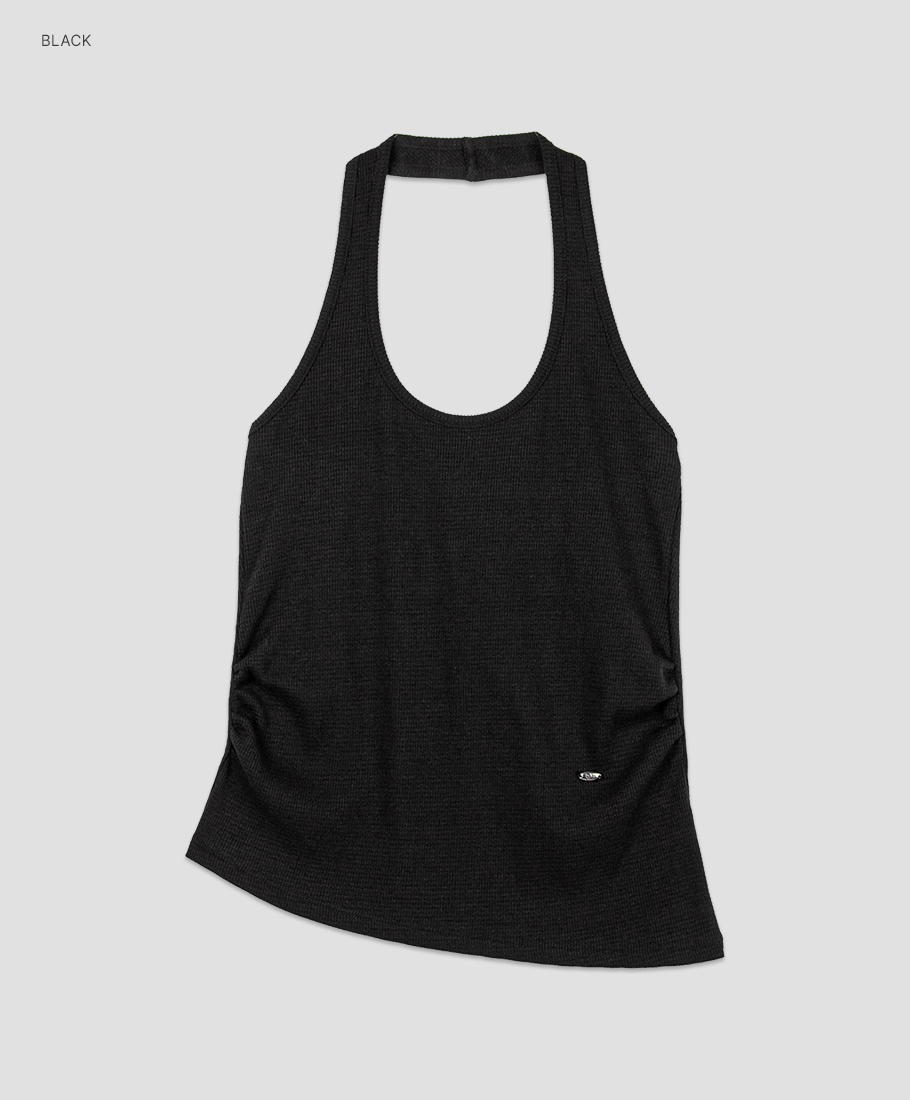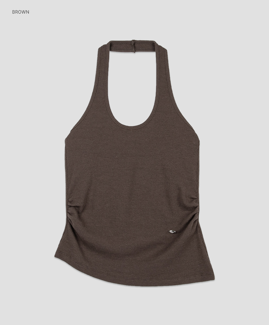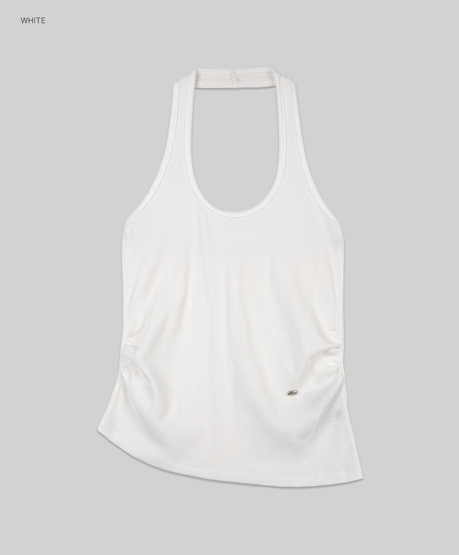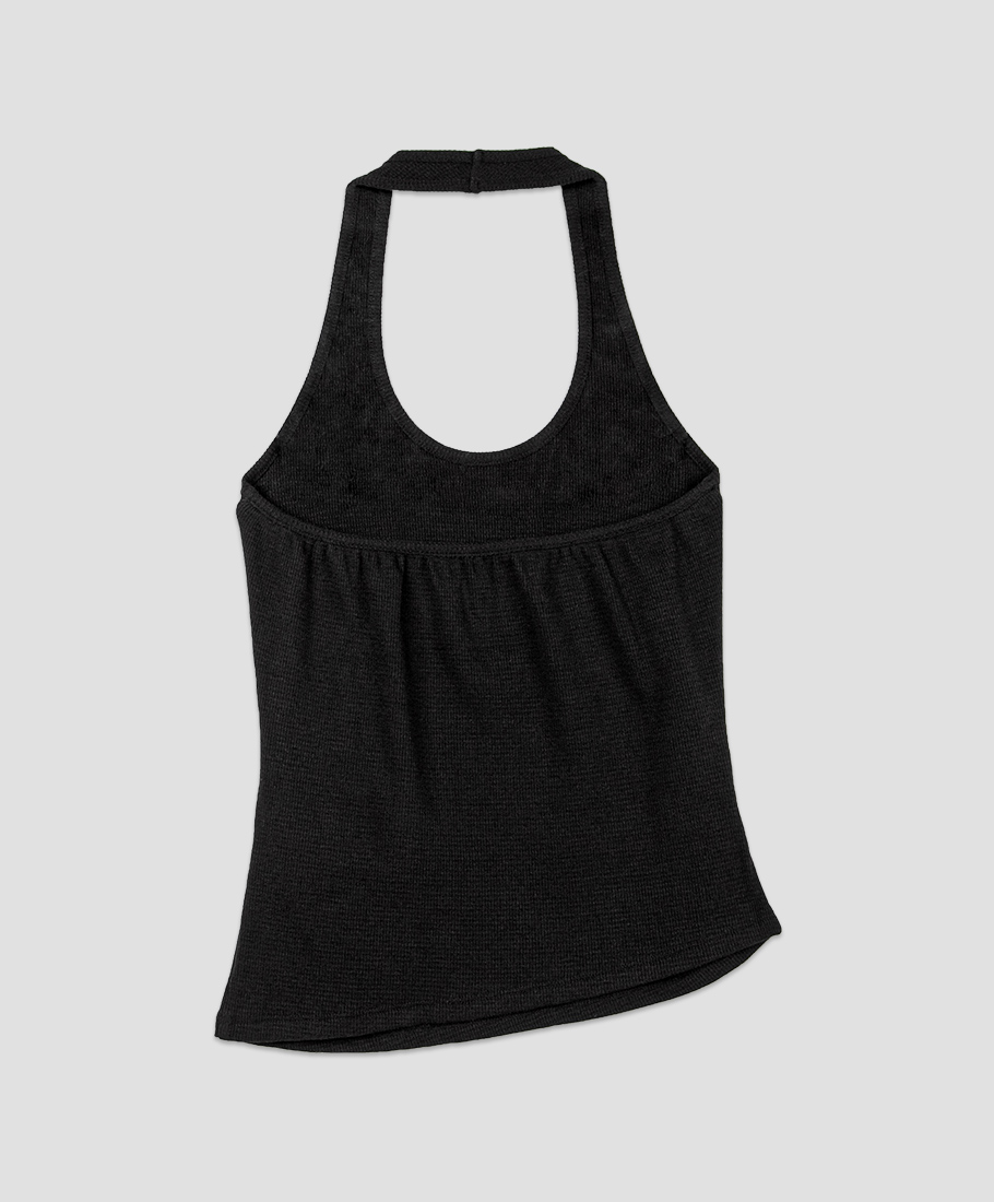 홀터 라인이 센슈얼한 무드를 살리며, 와플 조직 텍스처가 캐주얼함을 더합니다.
