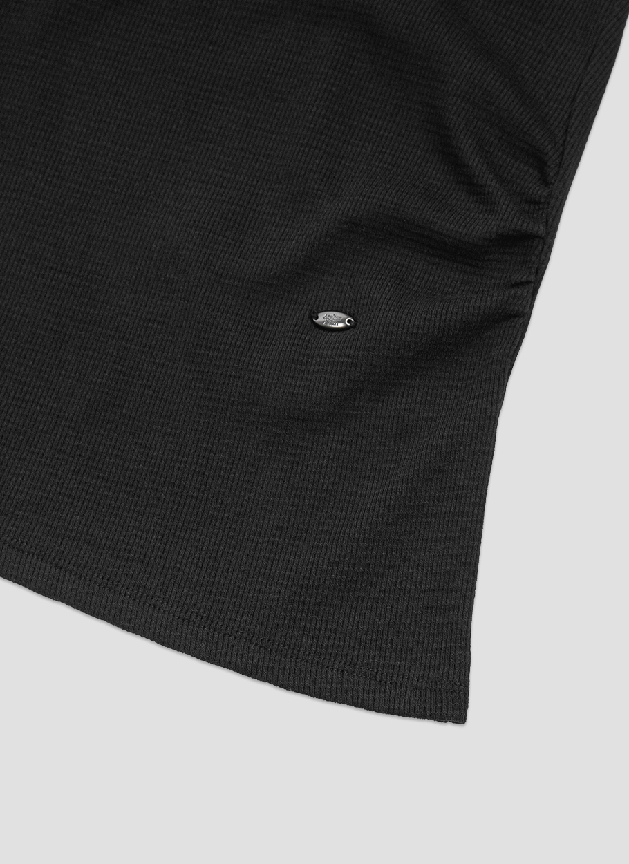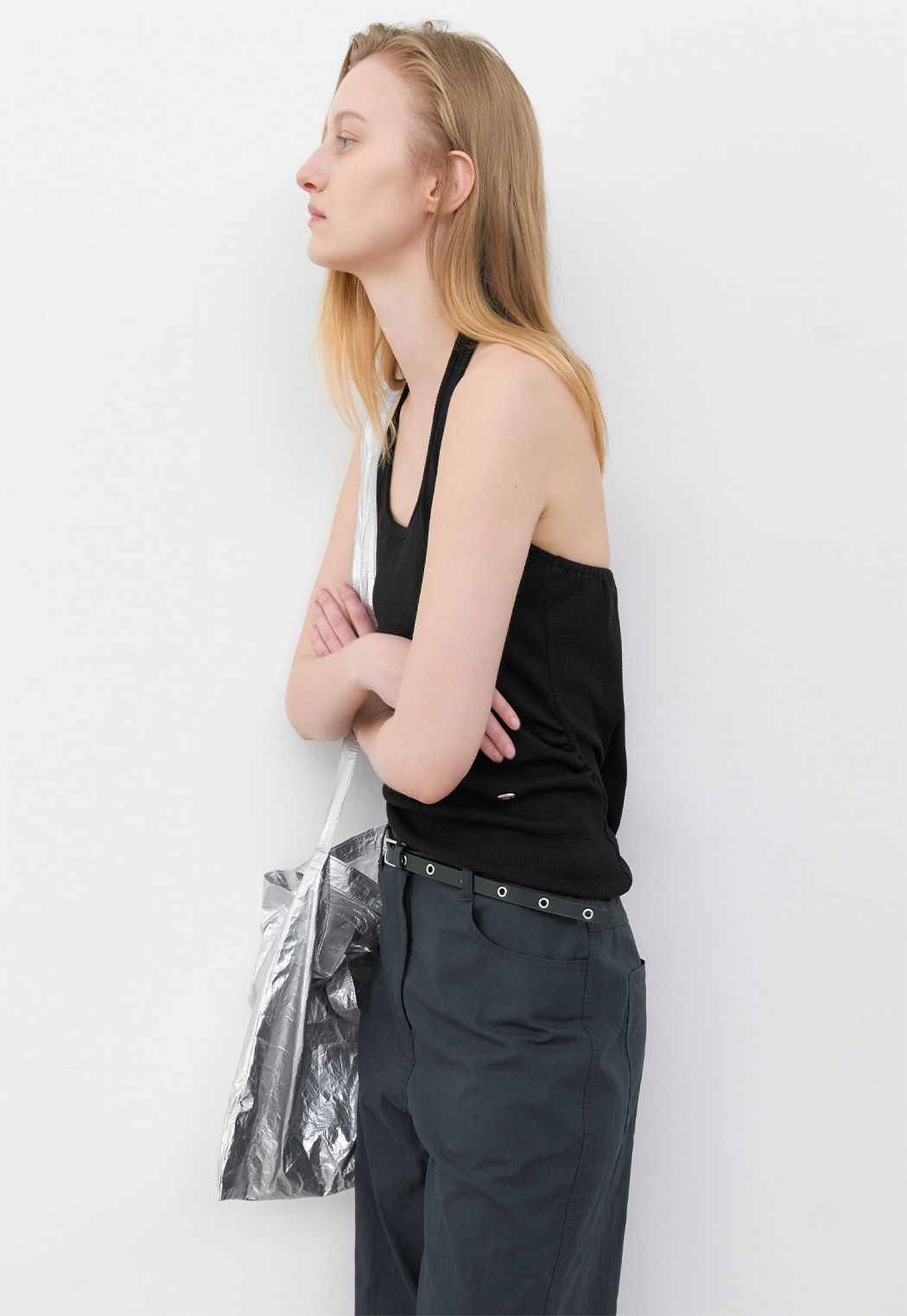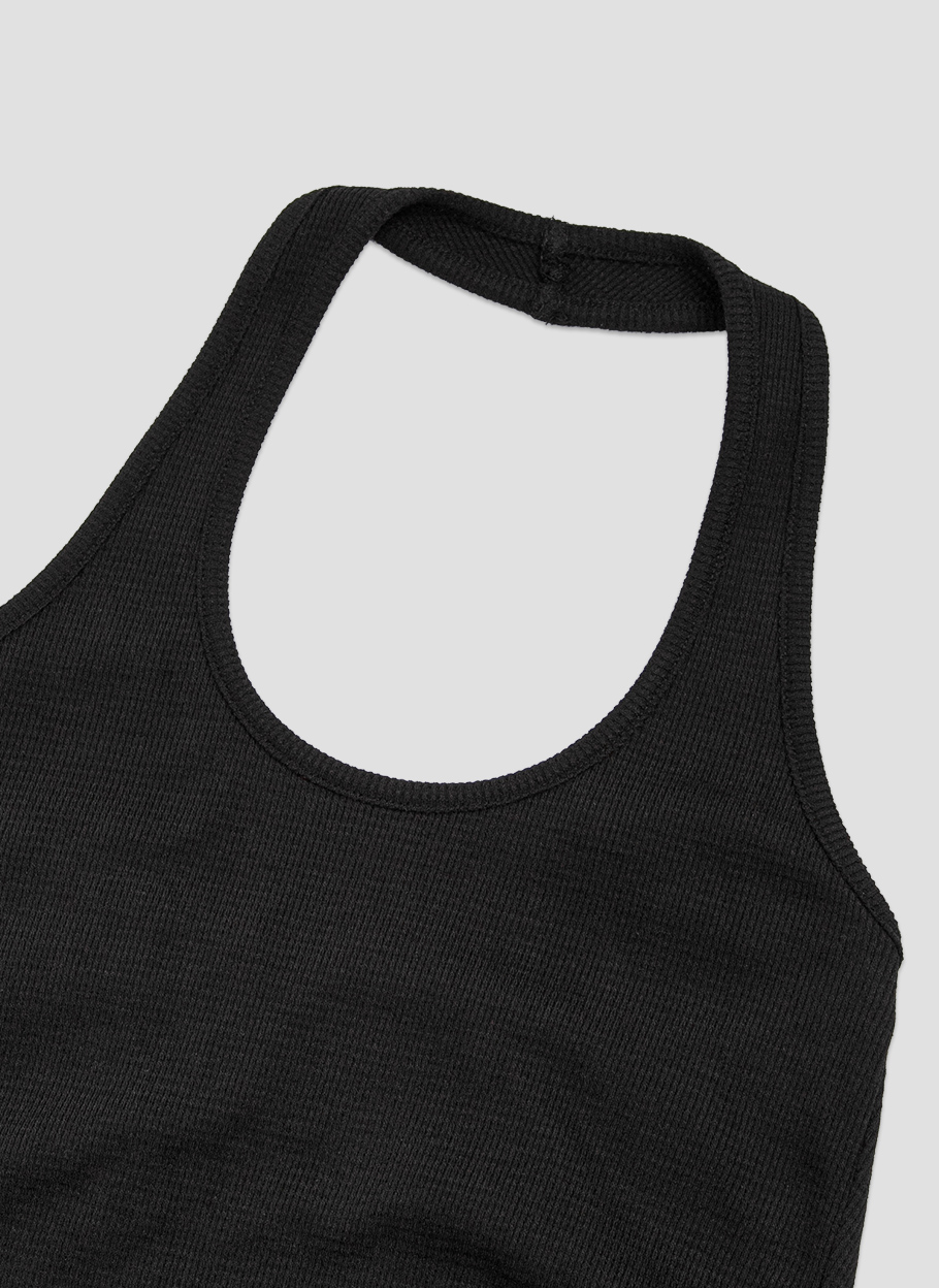 홀터 라인이 센슈얼한 무드를 살리며, 와플 조직 텍스처가 캐주얼함을 더합니다.