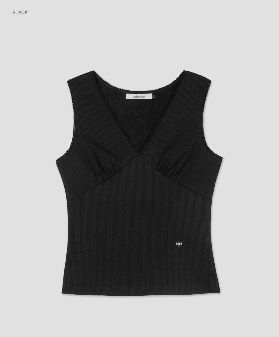 (T-7212)V-NECK LACE SLIM SLEEVELESS TOP