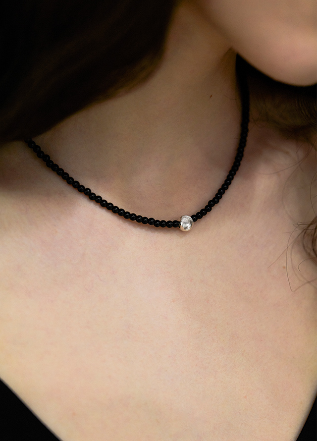 정교하게 다듬어진 실버볼 펜던트가 절제된 블랙 스트랩과 만나