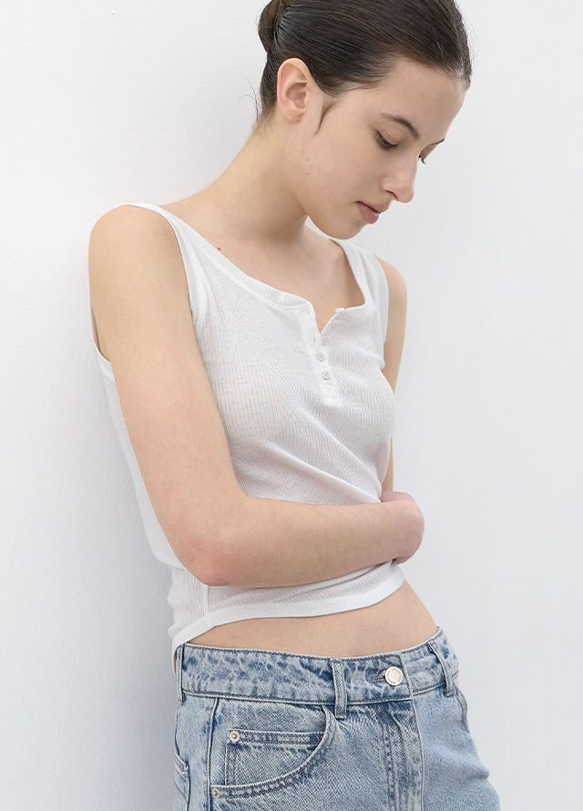 (T-7229)AN RIBBED 4-BUTTON SLEEVELESS TEE