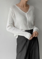 (CD-1849)リブドVネックニットカーディガン