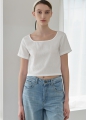 (T-6615)スクエアネックケーブルパフニットトップ
