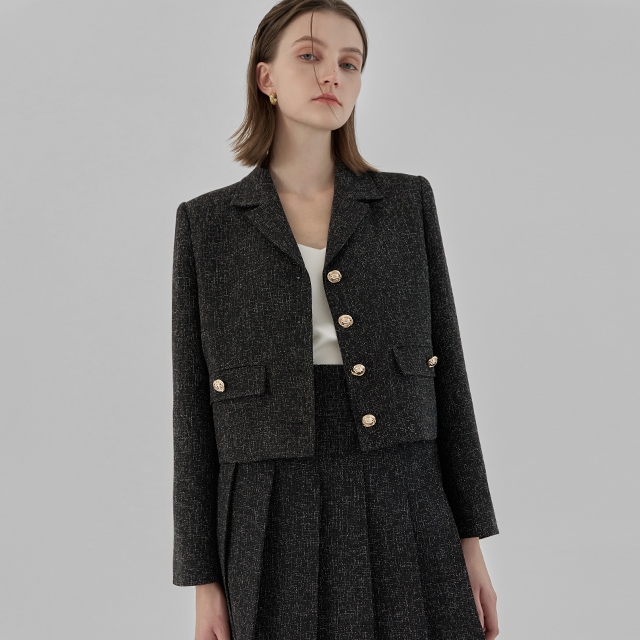 (SK-4758)ロッジセットアップツイードプリーツスカート